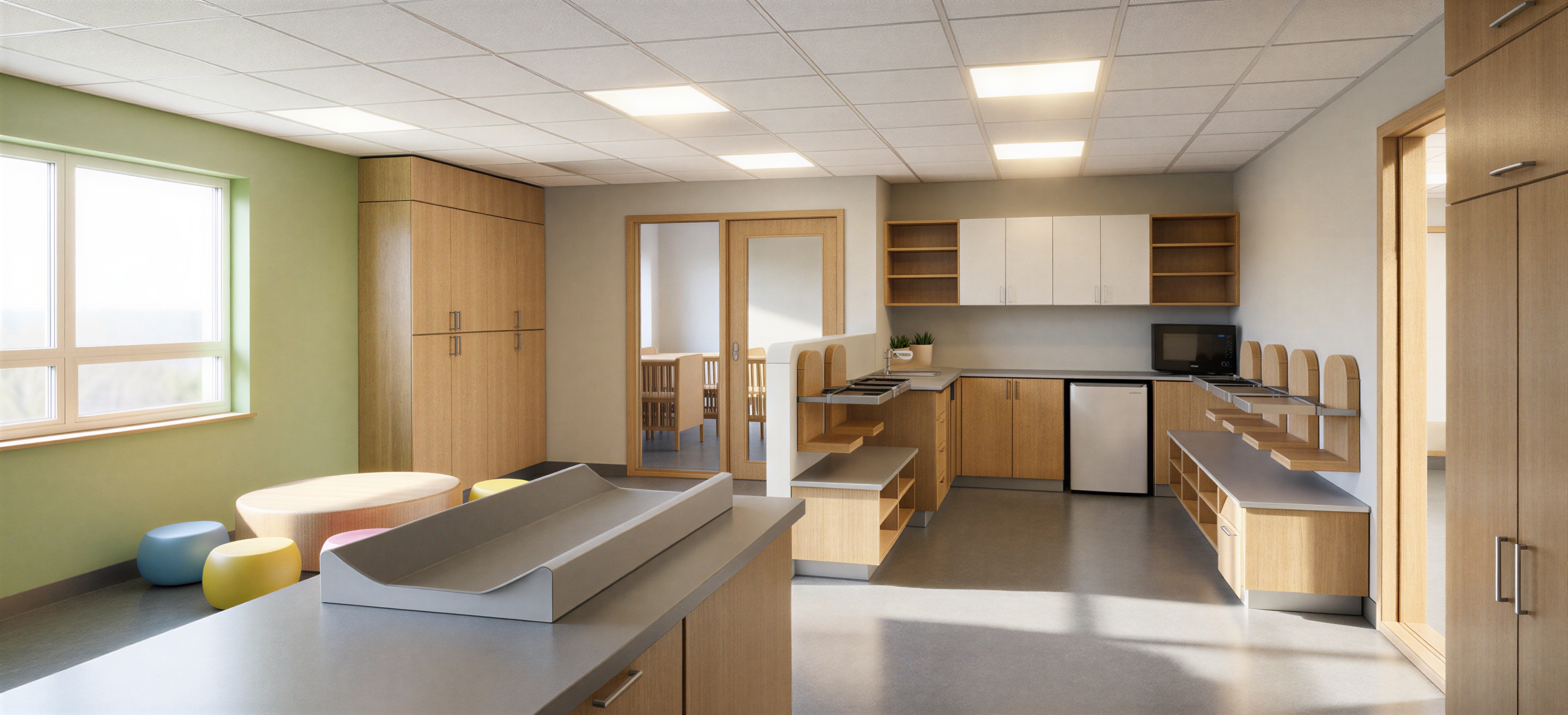 add a blurred baby sitting in one of the high chair make him proportionnal to the room make sure he is facing the right way