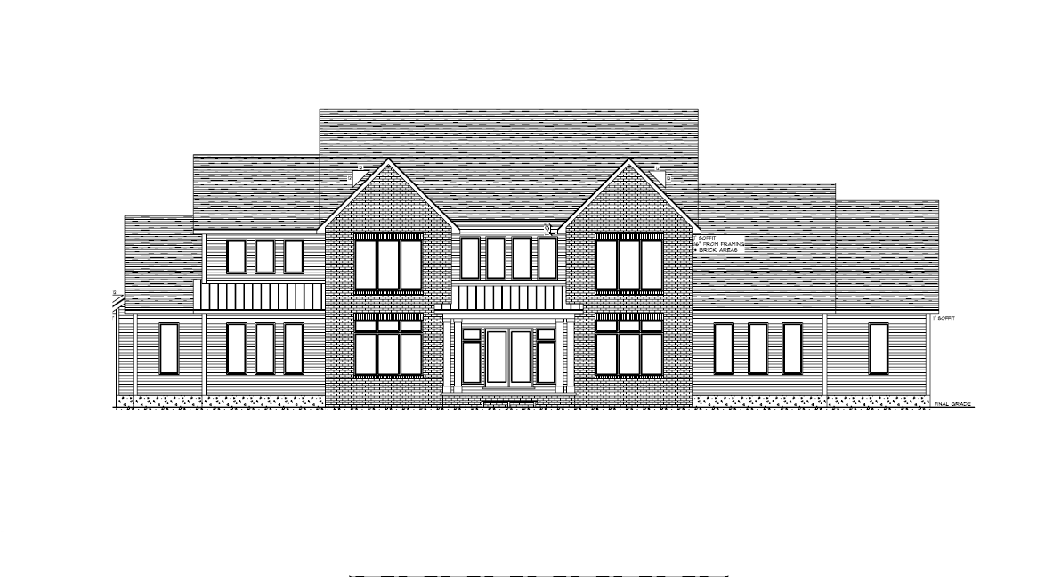 make as photorealistic as possible while keeping textures the same as selection professional landscaping in a lightly wooded scene with good lighting light off white painted brick black roof black windows off white siding