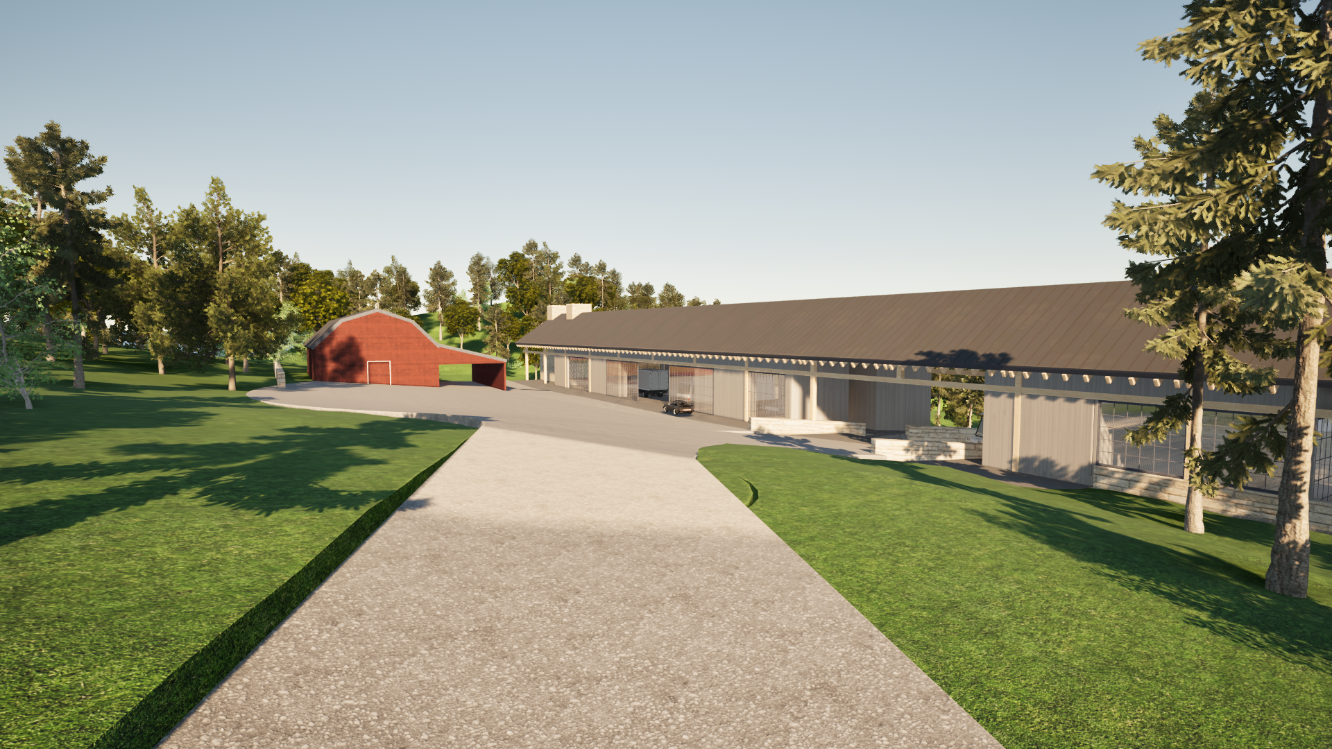 contemporary building gravel road