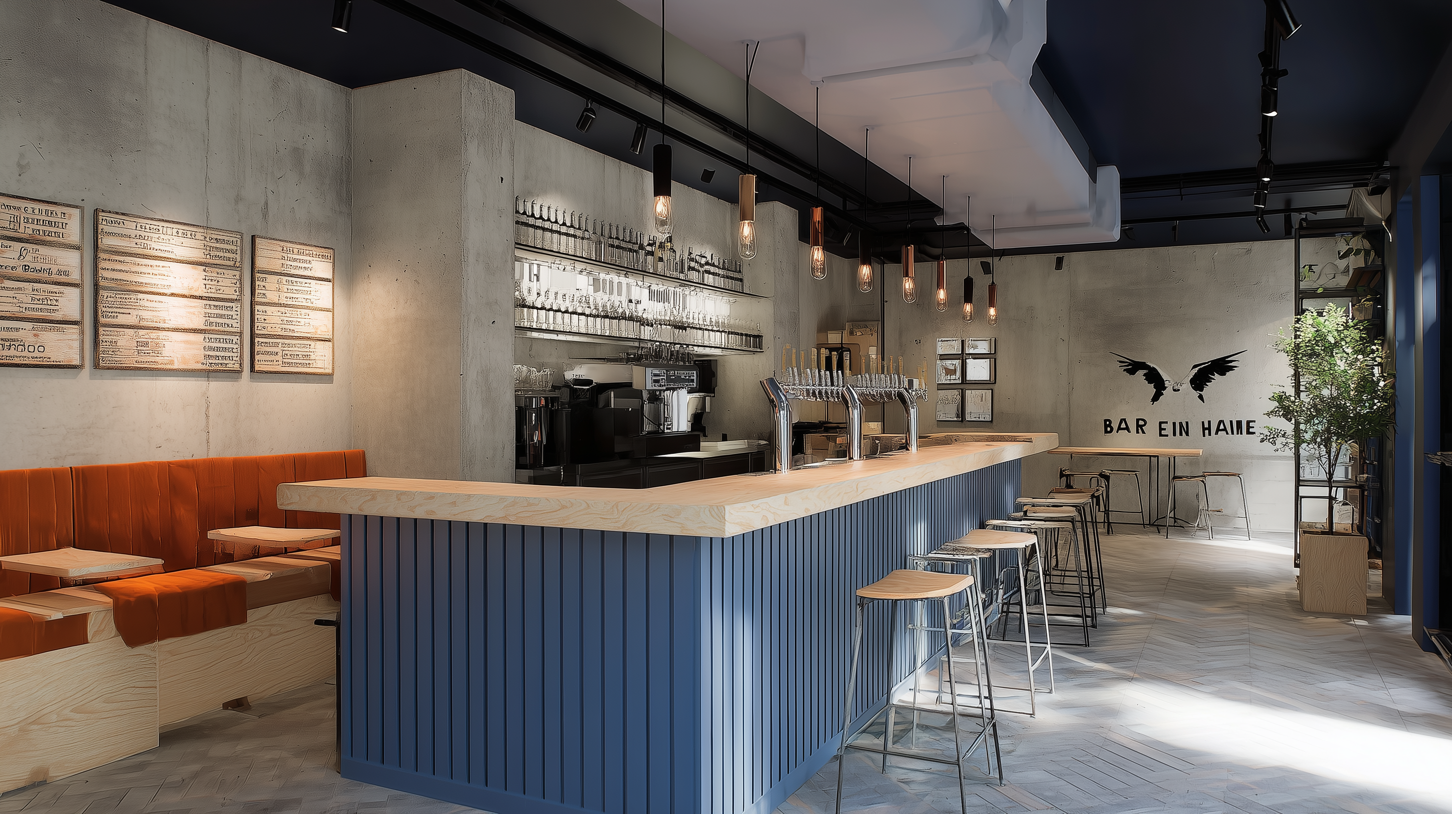 repaint the bar in a bright almost neon cobalt blue and add a galvanized steel top