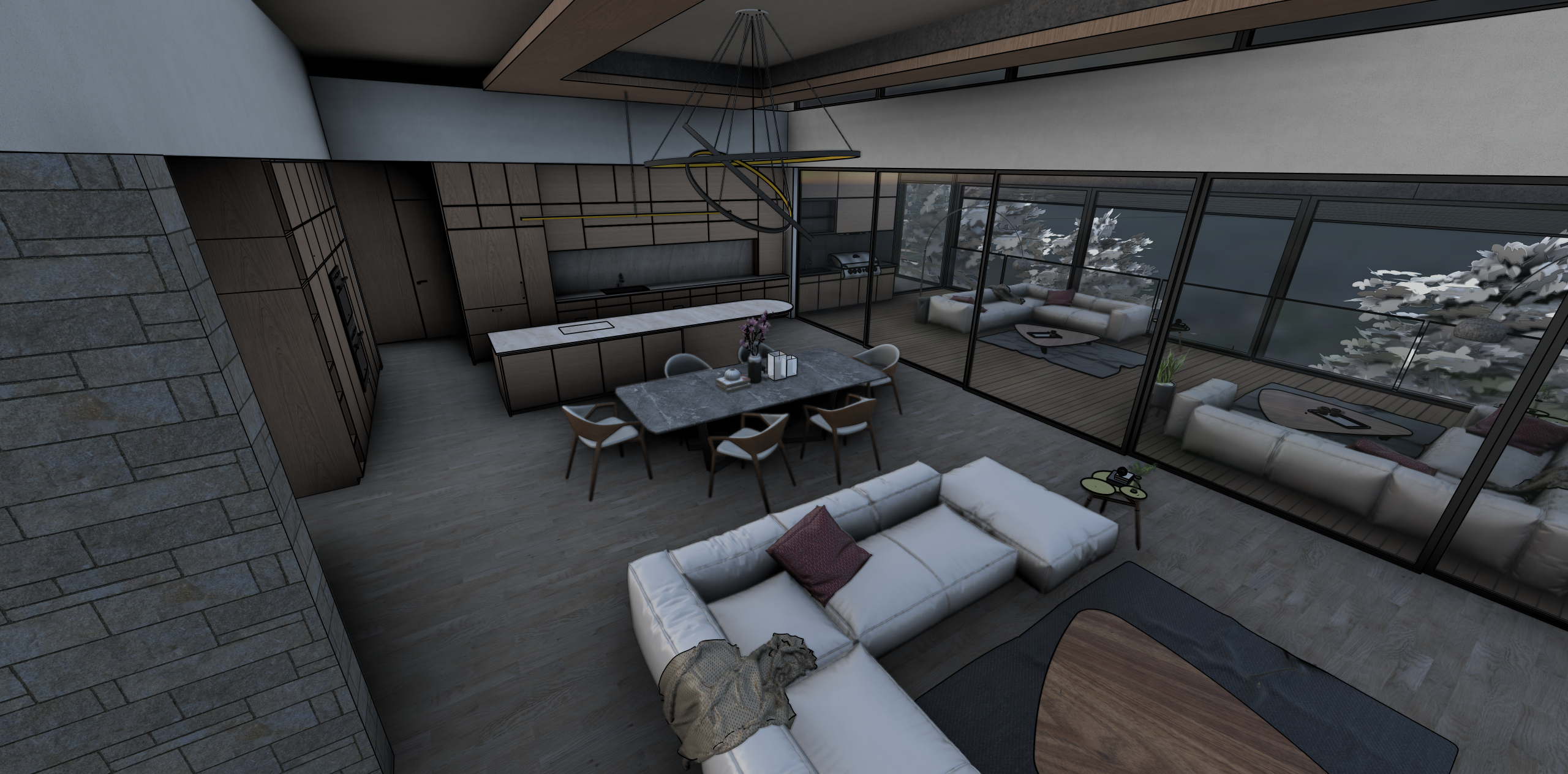 create a realistic rendering of this living room brighter summer tone
