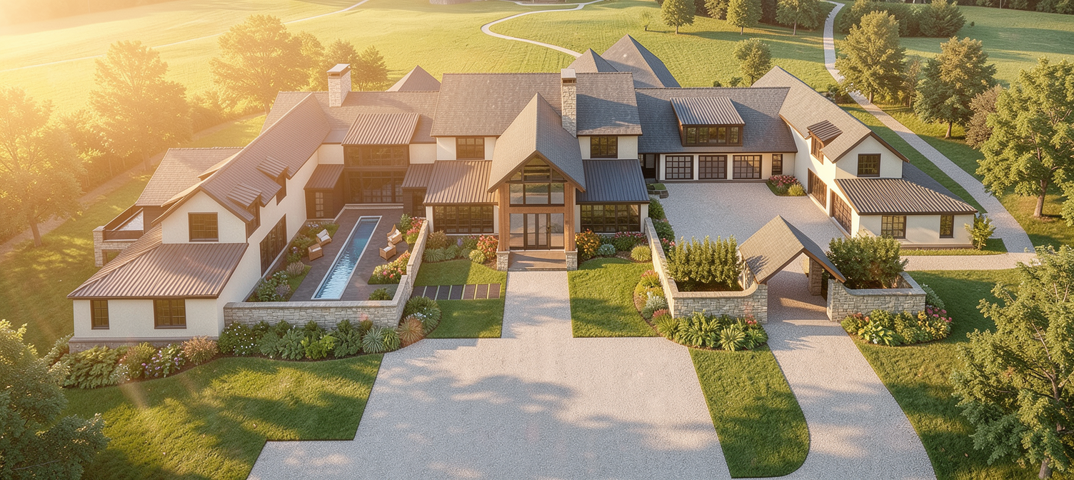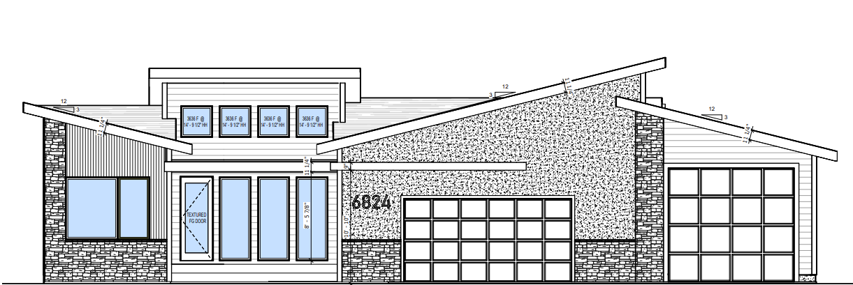 the garage doors windows and fascia will be black the stucco on the garage 2 stall will be sherwin williams felted wool and the rest of the siding will be sherwin williams anew gray the stone will be a black stacked stone the roof shingles will also be black