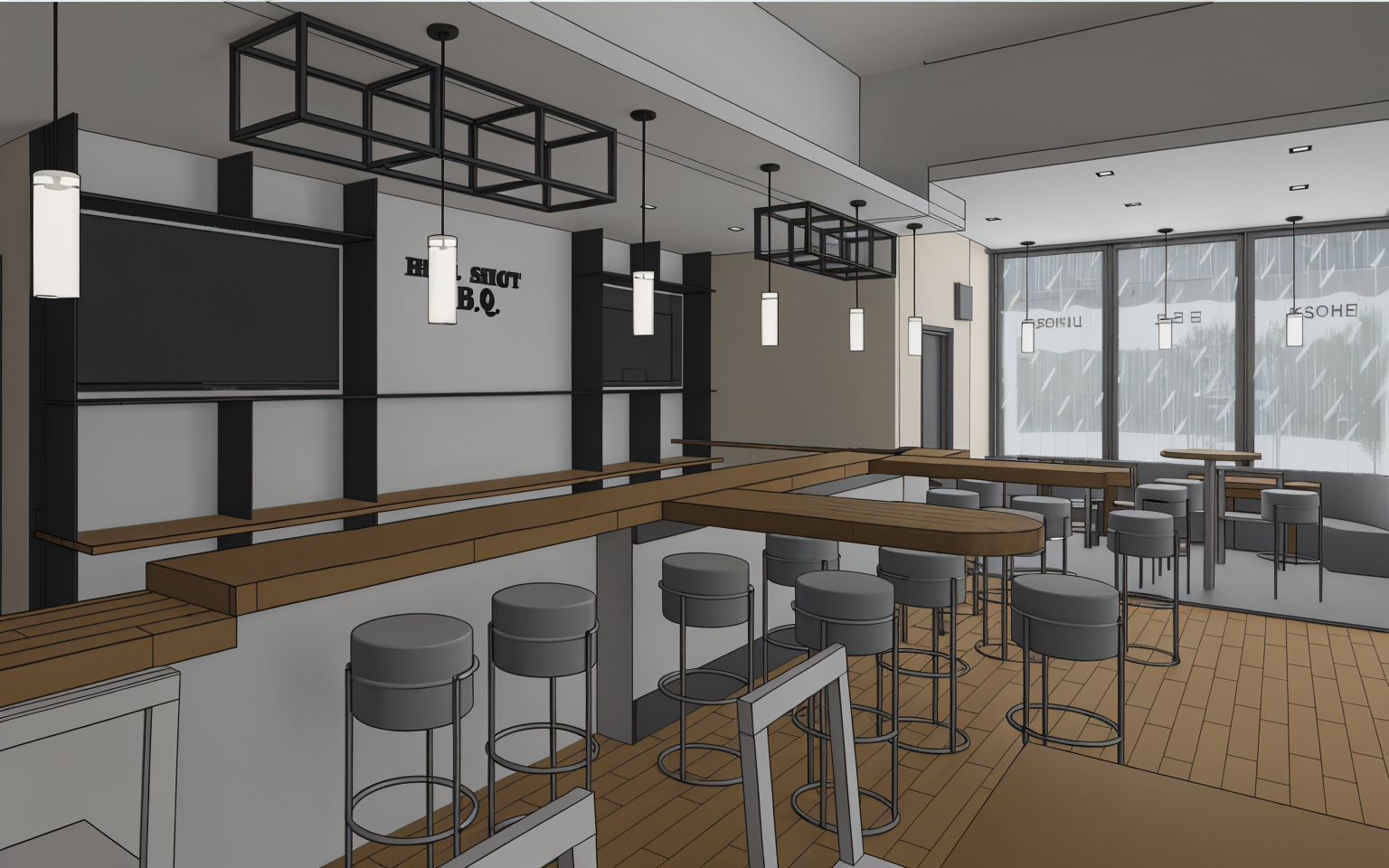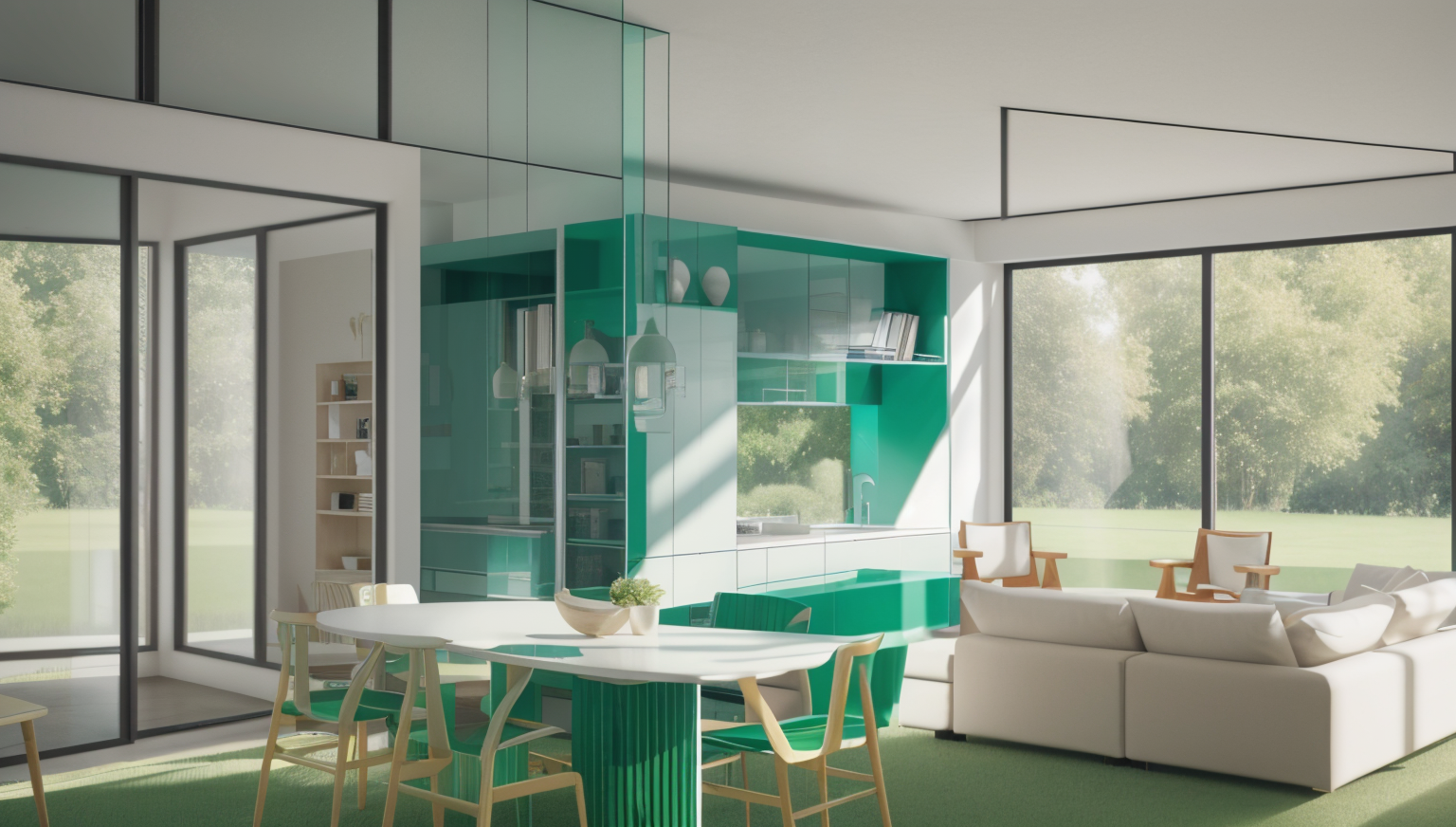 modernist interior shot keep interior as is and add garden landscape background architecture