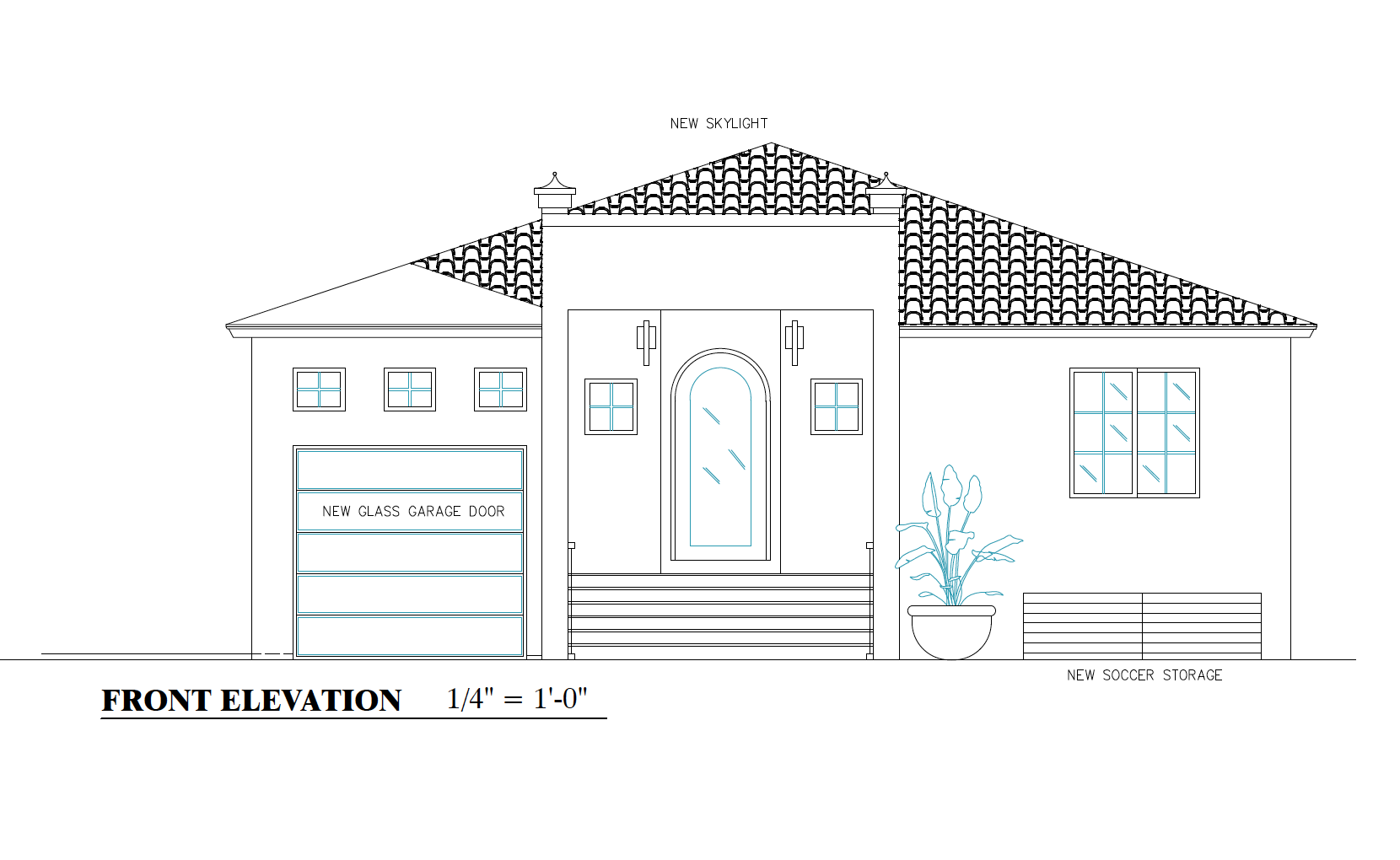 exterior shot a modern house with a mediterranean style design the roof features terracotta tiles in a warm earthy red tone the walls of the house are painted in a soft cream color providing a warm and inviting feel the new skylight adds a touch of elegance and floods the interior with natural light the glass garage door is sleek and contemporary with clear glass panels and a light gray frame large windows with minimalistic design frame the house allowing for abundant natural light the front entrance is highlighted by a stylish arched doorway in a polished oak finish lush greenery surrounds the house with vibrant green plants in modern stone planters the atmosphere is bright and serene evoking a sense of coastal tranquility