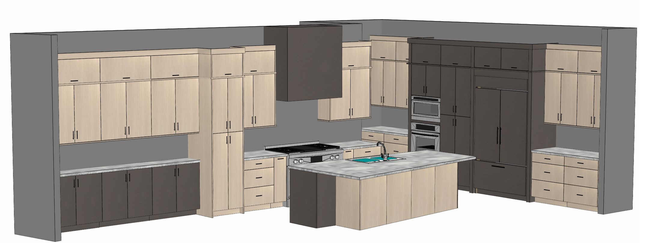 do not change the cabinets in any way preserve the exact cabinet colors materials finishes dimensions door and drawer styles hardware spacing alignment and all geometry exactly as shown do not alter the countertop shape backsplash appliances flooring lighting fixtures or wall structure only remove the construction materials clutter and mess from the scene clean the room and make it look finished and staged add a few simple tasteful home accessories appropriate for the style of the space but do not add or remove any furniture windows or architectural elements maintain the original lighting direction and realism enhance clarity and polish the photo while keeping the cabinetry and room design completely unchanged do not alter the lighting to keep the cabinet colors as they are in the image do not change the walls keep the cabinet layout and hood as shown do not add windows just make the image look realistic