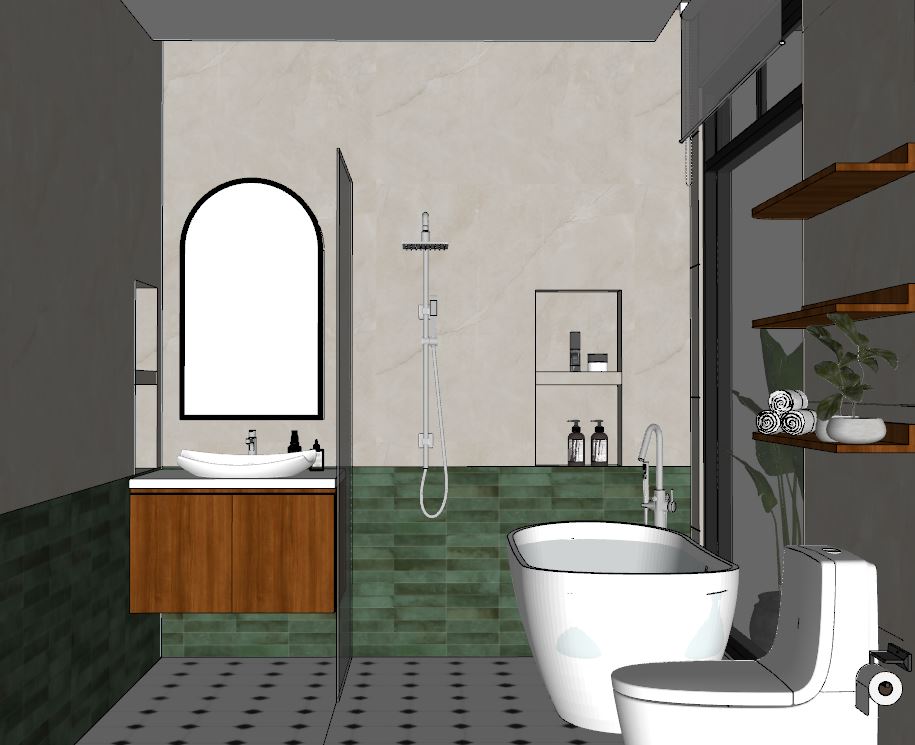 create ultra realistic images without changing any structure shape design or materials do not resize jpegs add indirect light to curtain valance and all around the mirror and add spotlight to ceiling and add soft outdoor light make the wall glossy and the floor is matte