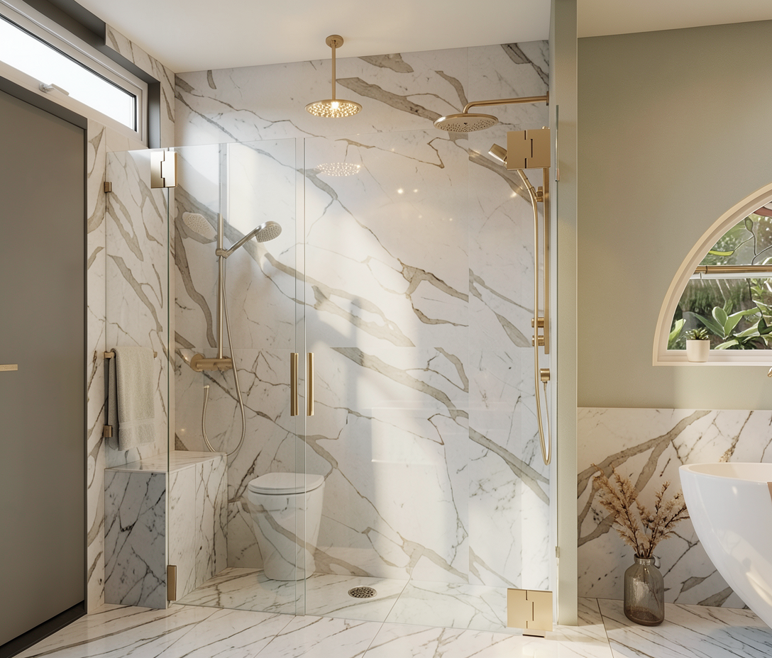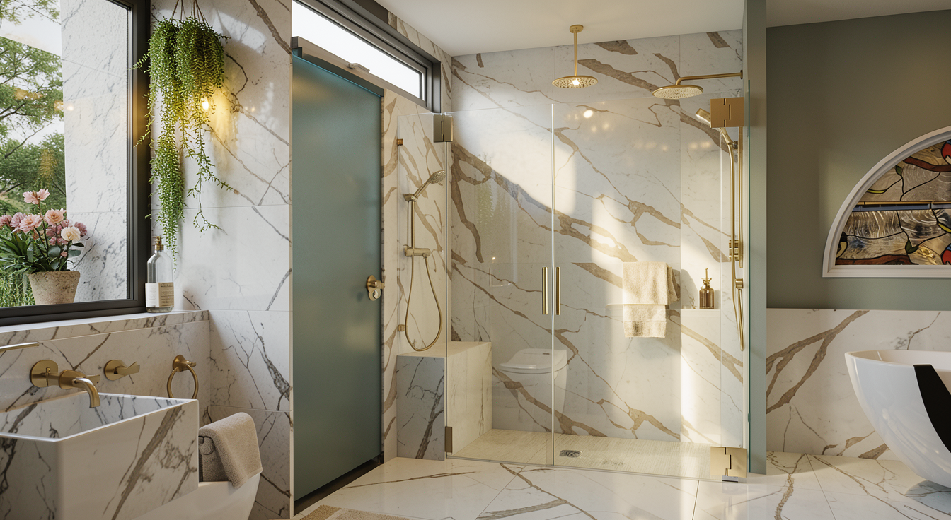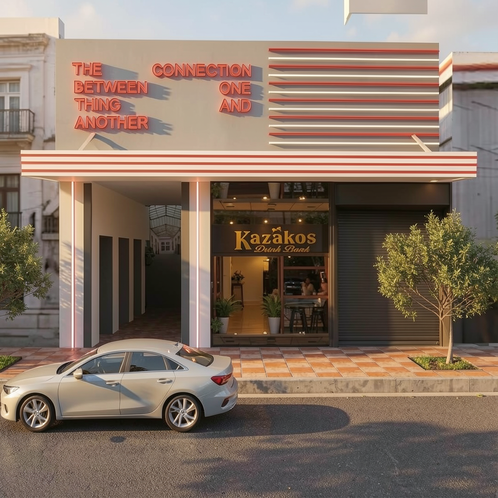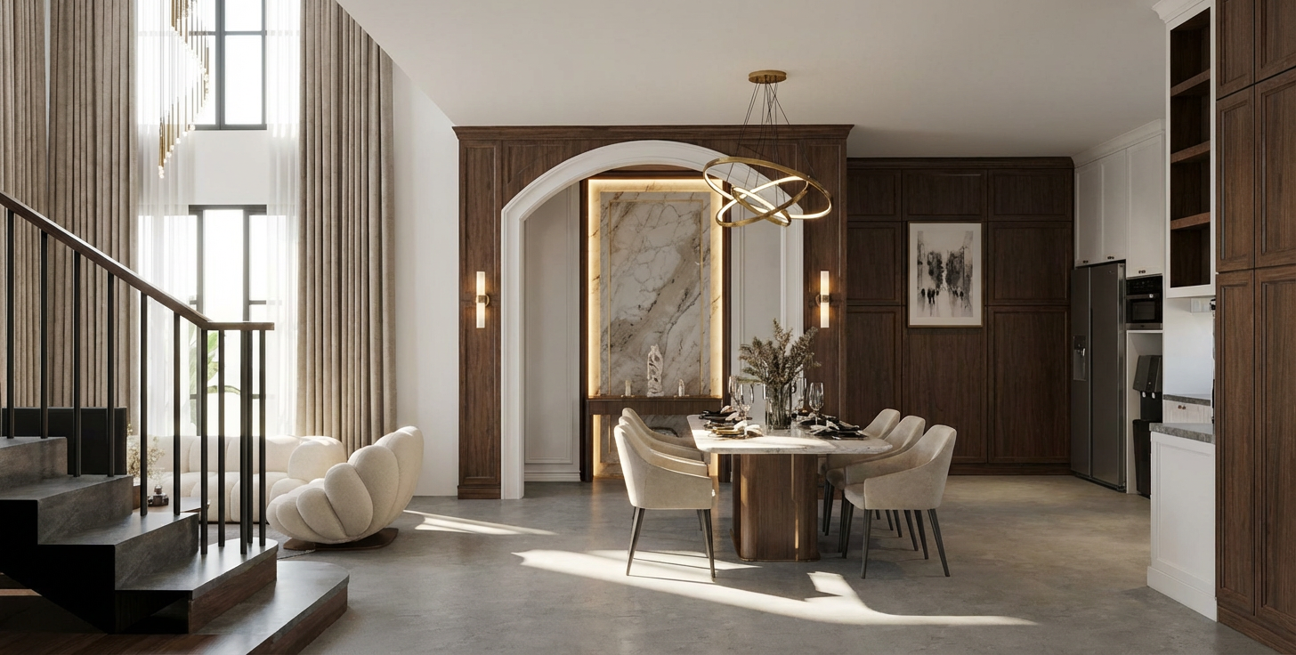 convierte la imagen en foto realista manteniendo las formas colores y texturas el mueble dorado de la izquierda es una chapa dorada una trama troquelada por la que sale luz lo de la derecha no es una ventana exterior es una ventana que da al obrador de churrer a las vitrinas tienen luz las l mparas que cuelgan del techo iluminan las columnas son doradas con poco brillo las mesas tienen perfil y patas doradas es una imagen interior no entra luz de fuera mant n la textura de la parte baja del mueble como la original