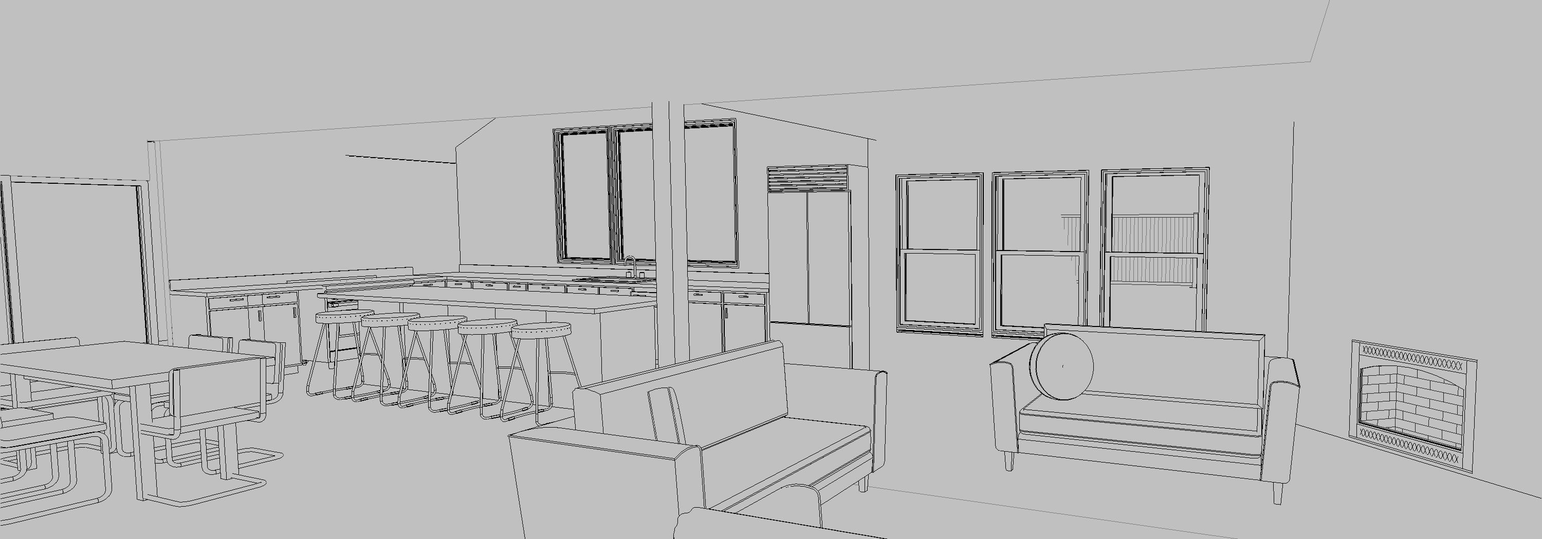 interior rendering in a contemporary but farmhouse chic style maintain all structures and windows door locations in no circumstances change the structure in the source image