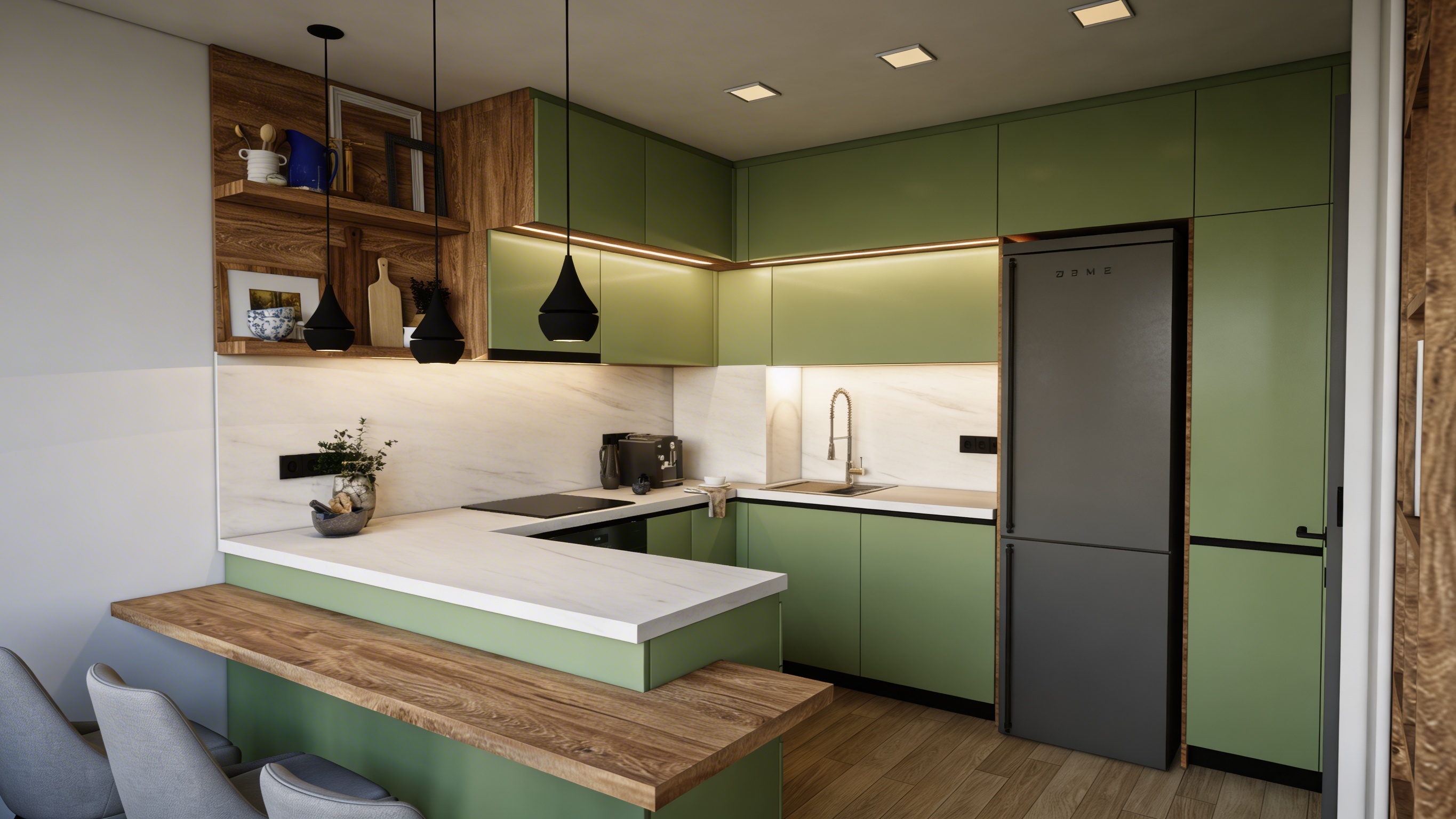 make cabinets black and floor black and white