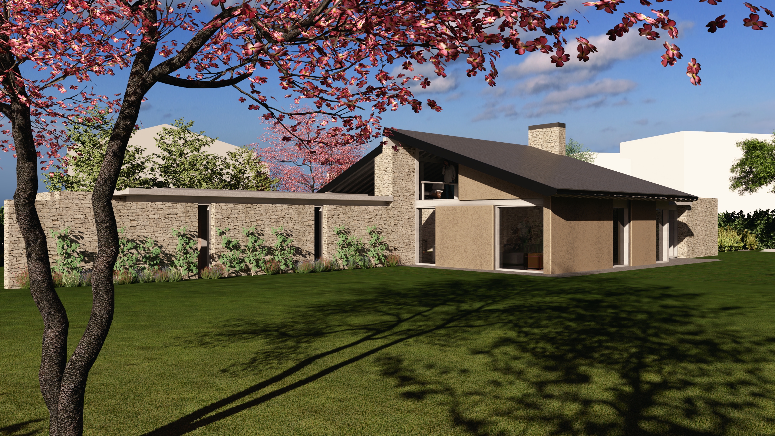 use this image strictly as a base reference absolutely preserve architecture geometry and proportions camera position perspective and framing all architectural elements and materials layout do not modify or redesign any part of the building enhance the scene with a warm shabby chic atmosphere soft slightly weathered materials subtle imperfections not exaggerated warm and inviting color tones delicate natural styling details without altering the architecture add realistic human presence natural looking people casually interacting correctly scaled and integrated with lighting and shadows not posed or artificial enhance vegetation realistic greenery with natural variation in color and density avoid overly perfect or artificial plants lighting golden hour sunset light soft warm tones with long natural shadows balanced exposure not dramatic or cinematic overall result a highly realistic photograph of the exact same scene with a warm lived in shabby chic atmosphere no stylistic reinterpretation no changes to the architecture do not make the walls look too aged