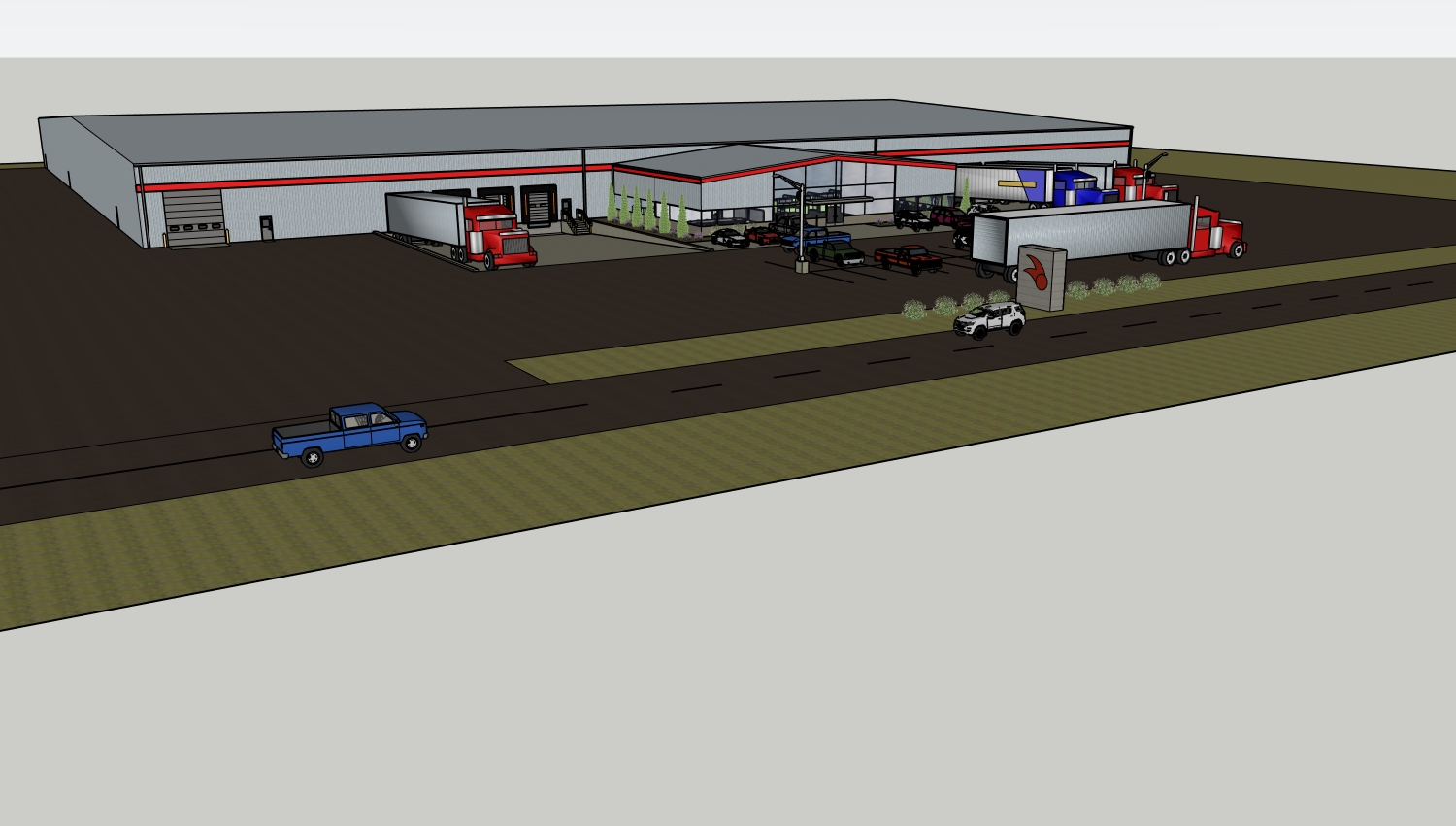 new building with metal siding and metal roof rural setting new asphalt blue sky some clouds