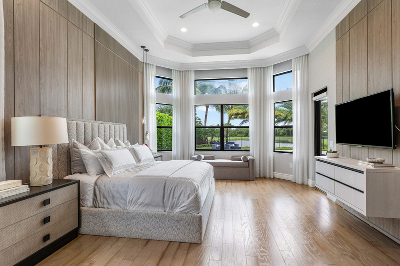 add a rug under the bed and crisp up the bedding so there are no creases and add a beautiful chandelier