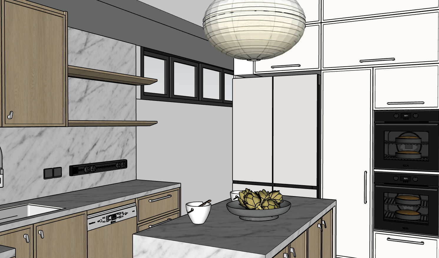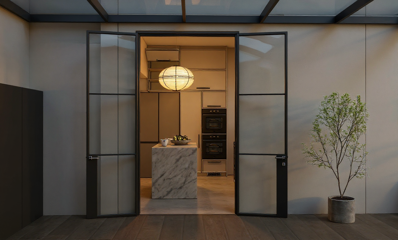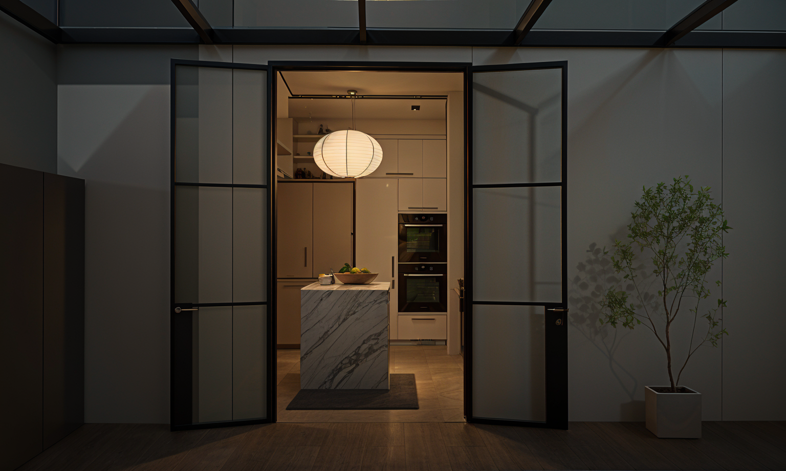lights turned on morning spotlight on ceiling inside kitchen
