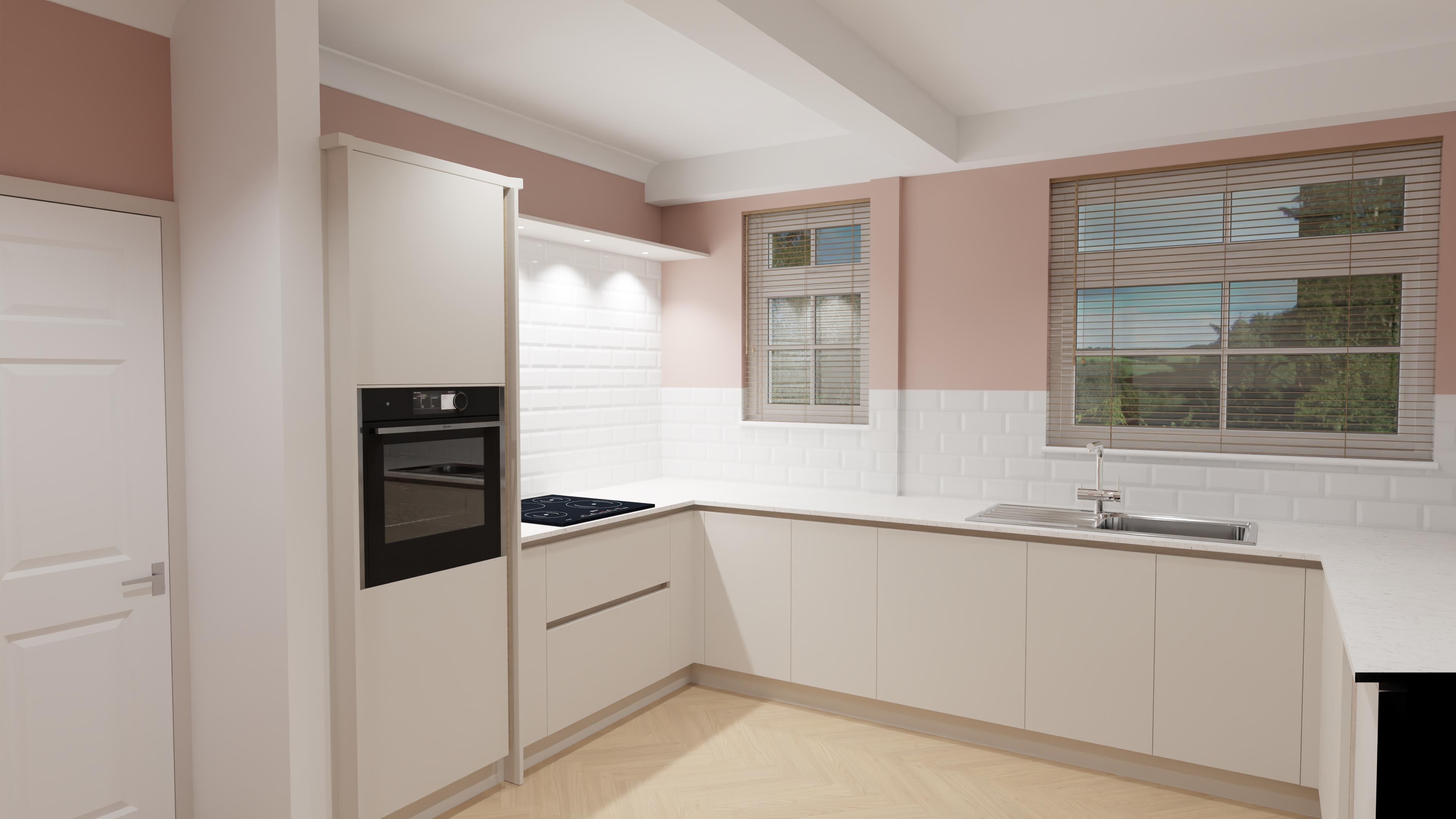dress the kitchen photorealistic render natural lighting
