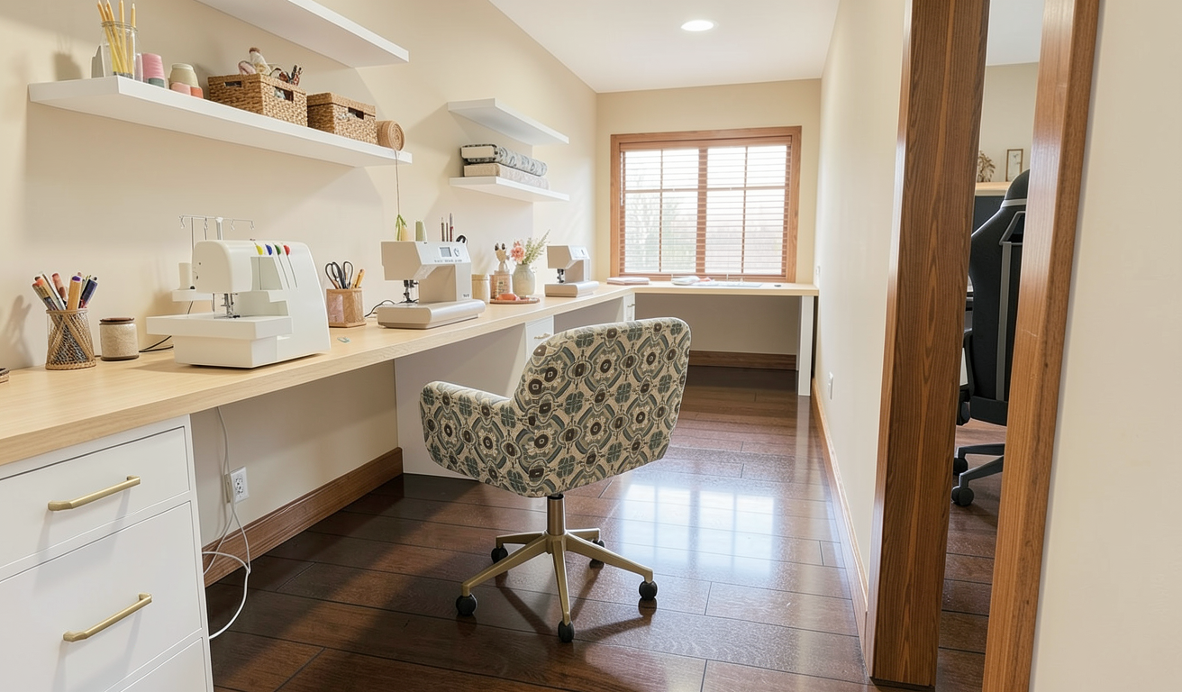 very lightly accessorize this sewing room
