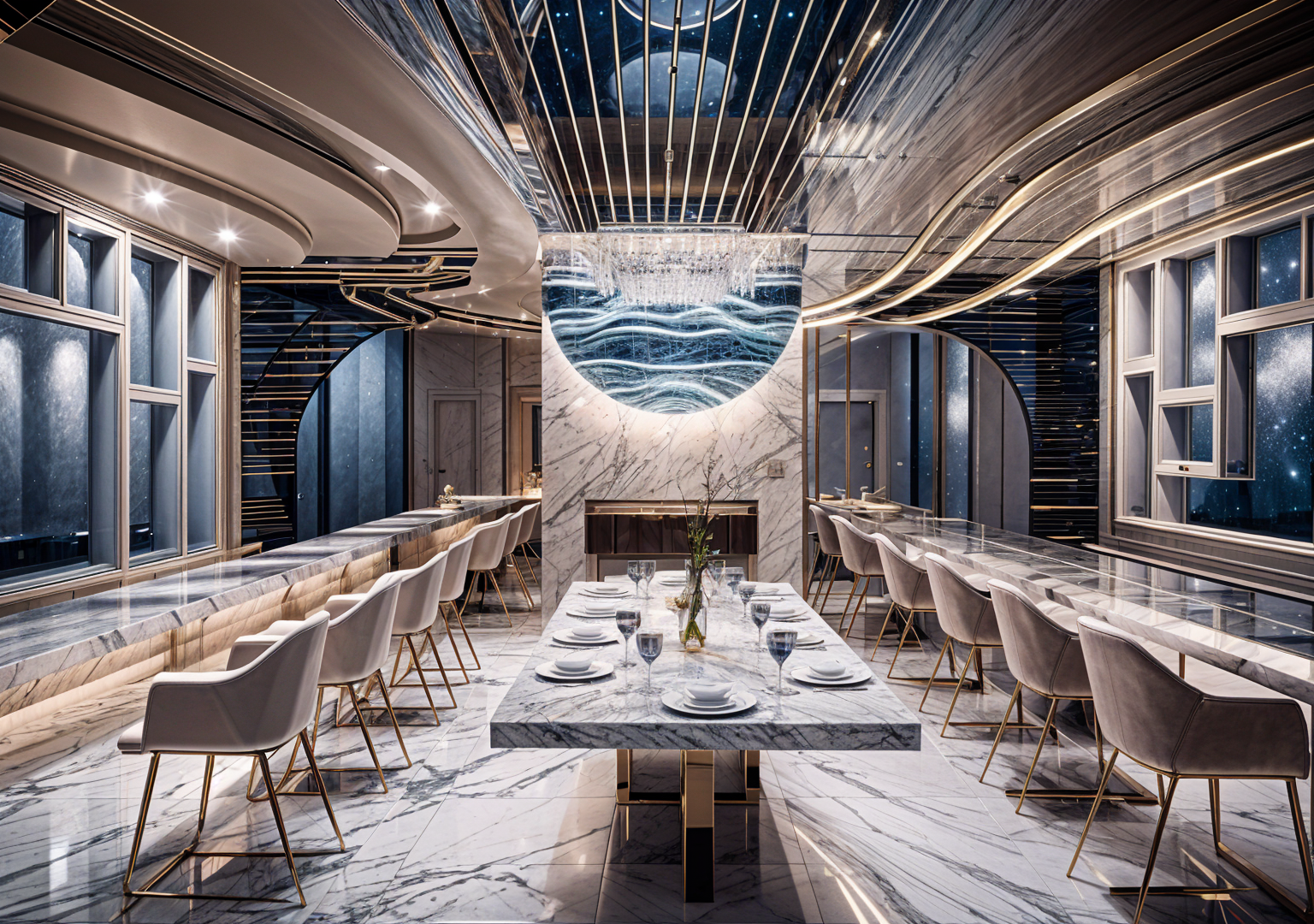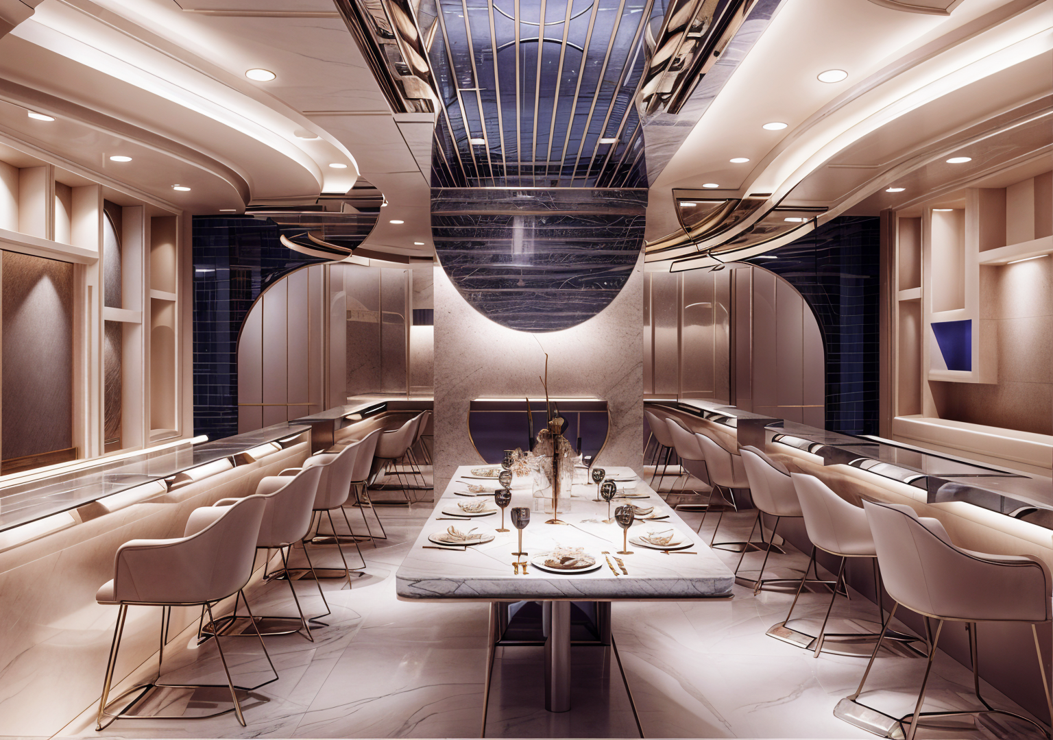 interior shot make the wall displays as the reference image and combine both the colour tones