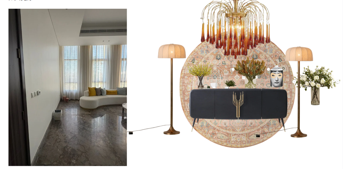 put furnitures and carpet on left side existing house and send me