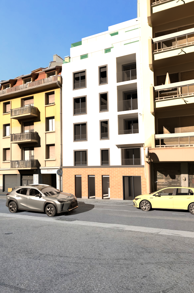 photorealistic high end architectural visualization of an existing building absolute constraint the architecture must remain strictly identical to the input image no modification of geometry structure proportions or design preserve all architectural elements exactly windows balconies railings facade layout no reinterpretation no redesign no added or removed elements structure lock perfect match to original image composition camera angle framing and perspective must remain unchanged pixel accurate architectural fidelity controlled modification targeted only the central building facade must be modified apply a clean uniform white finish to the central facade only smooth painted or plastered white surface perfectly even no texture noise no stains no color variation keep all window frames borders and structural outlines in their original light grey color do not repaint or alter frames railings or openings do not affect adjacent buildings in any way ultra realistic render quality high end architectural visualization archviz studio quality physically based rendering pbr materials ultra detailed surfaces with subtle micro variation sharp details with realistic material response accurate reflections on glass and surfaces controlled subtle imperfections for realism lighting premium spring look warm natural sunlight soft golden tone spring atmosphere fresh and slightly vibrant colors soft global illumination and realistic bounce light balanced contrast soft shadows clean blue sky with subtle gradient environment keep all surroundings identical street cars vegetation improve only realism of shadows reflections and lighting no added or removed objects render style ultra photorealistic architectural competition quality clean modern aesthetic hdr lighting 4k 8k level detail camera eye level architectural photography 35mm lens no distortion negative prompt no redesign no geometry change no new architecture no color change outside central facade no modification of window frames must stay light grey no stylization no artistic interpretation no blur no noise no low detail window frames must remain light grey untouched original color preserved exactly