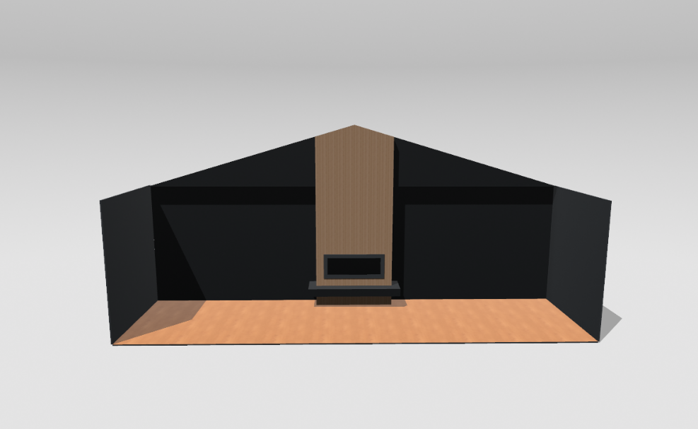 l shaped leather sectional on the left of the fireplace dining room table to the right of the fireplace running horizontally wood shiplap ceiling with white recessed lighting the room should have a scandinavian vibe