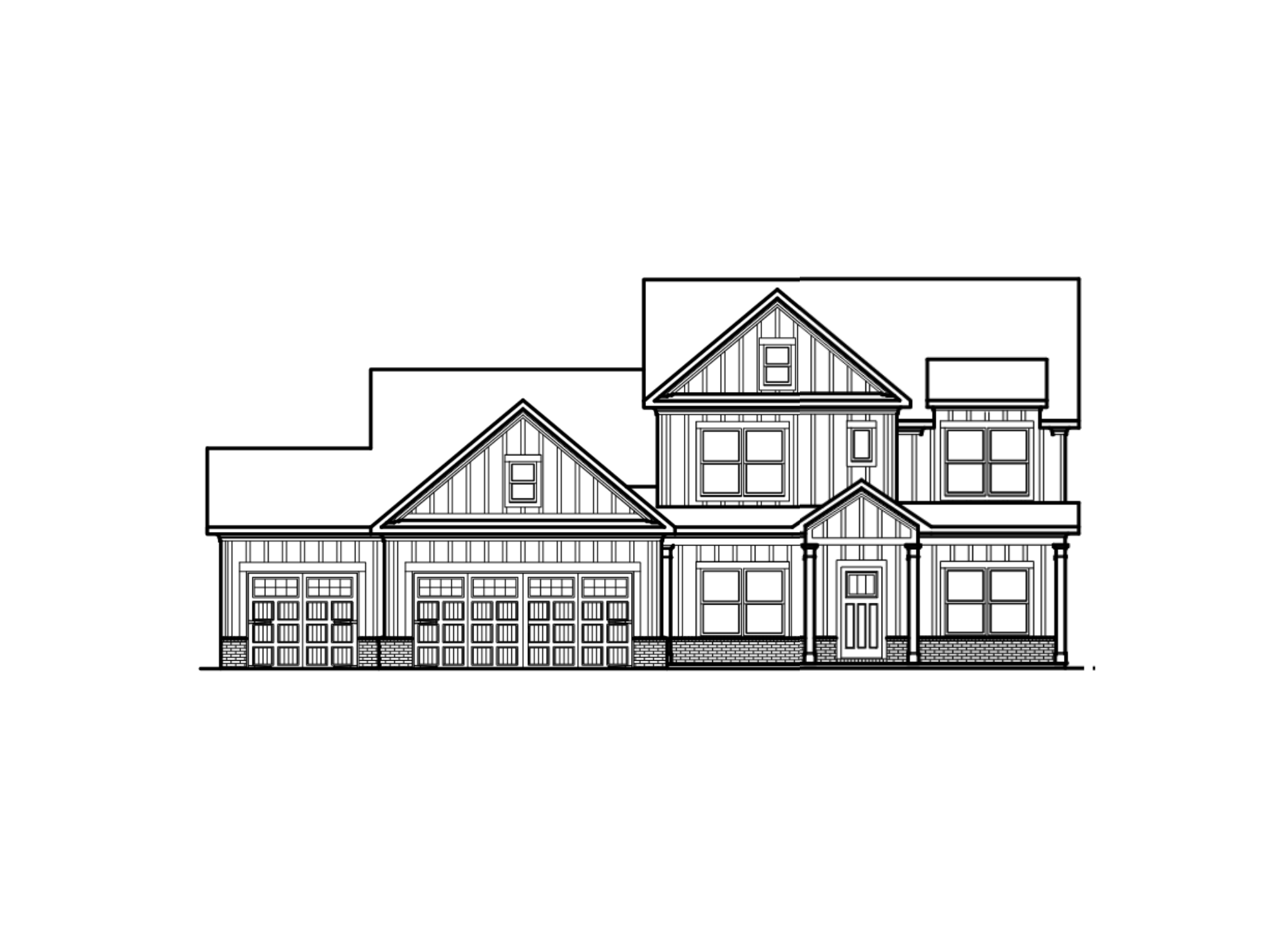 dark brown roof neutral colors trees behind minimal landscaping in front