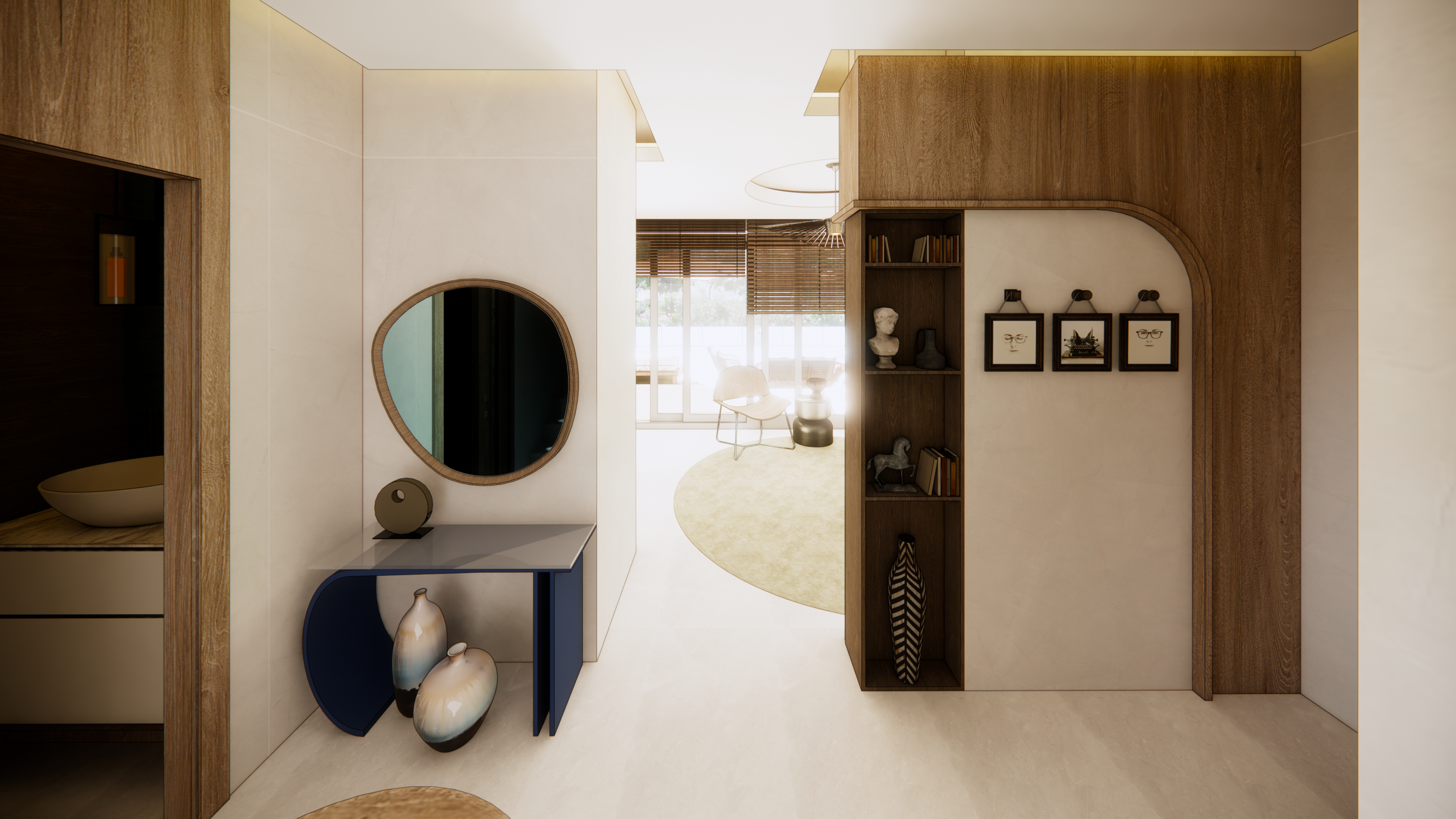 transform the provided interior image into a high end fully photorealistic render while keeping every aspect of the original design exactly the same maintain the same geometry proportions ceiling layout wall finishes materials colors furniture forms and spatial configuration do not move alter or replace any objects eliminate all sketch like illustrative or artificial rendering effects the scene must look like a real photograph with accurate lighting textures and sharpness the kitchen cabinets currently appear as simple block shapes enhance them so they read as real cabinets with proper surface definition texture depth realistic reflections and material clarity without changing their original form or position activate all existing spotlights and led strips in the suspended ceiling ensuring clean realistic illumination with natural light falloff keep all lighting locations unchanged only improve their realism and visibility enhance all materials to true photographic quality correct blur increase texture fidelity improve color accuracy refine shadows and balance the lighting maintain all original materials and surfaces exactly as they are only increase realism and physical accuracy do not introduce any new elements objects or furniture do not remove or replace anything in the scene the final result must be a sharp high resolution photorealistic visualization that looks indistinguishable from an actual photograph while preserving the entire original design exactly as provided