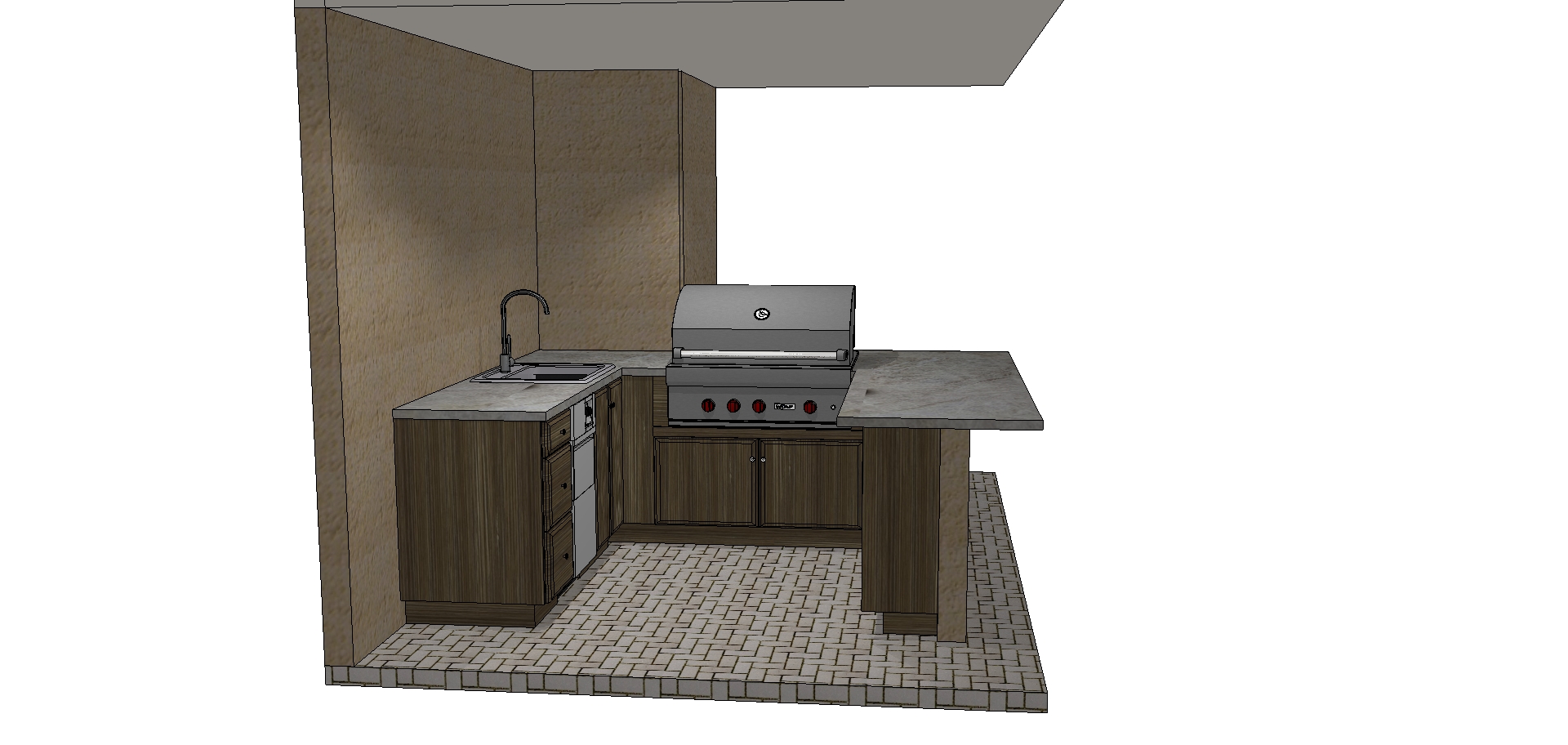 outdoor kitchen next to a pool architecture