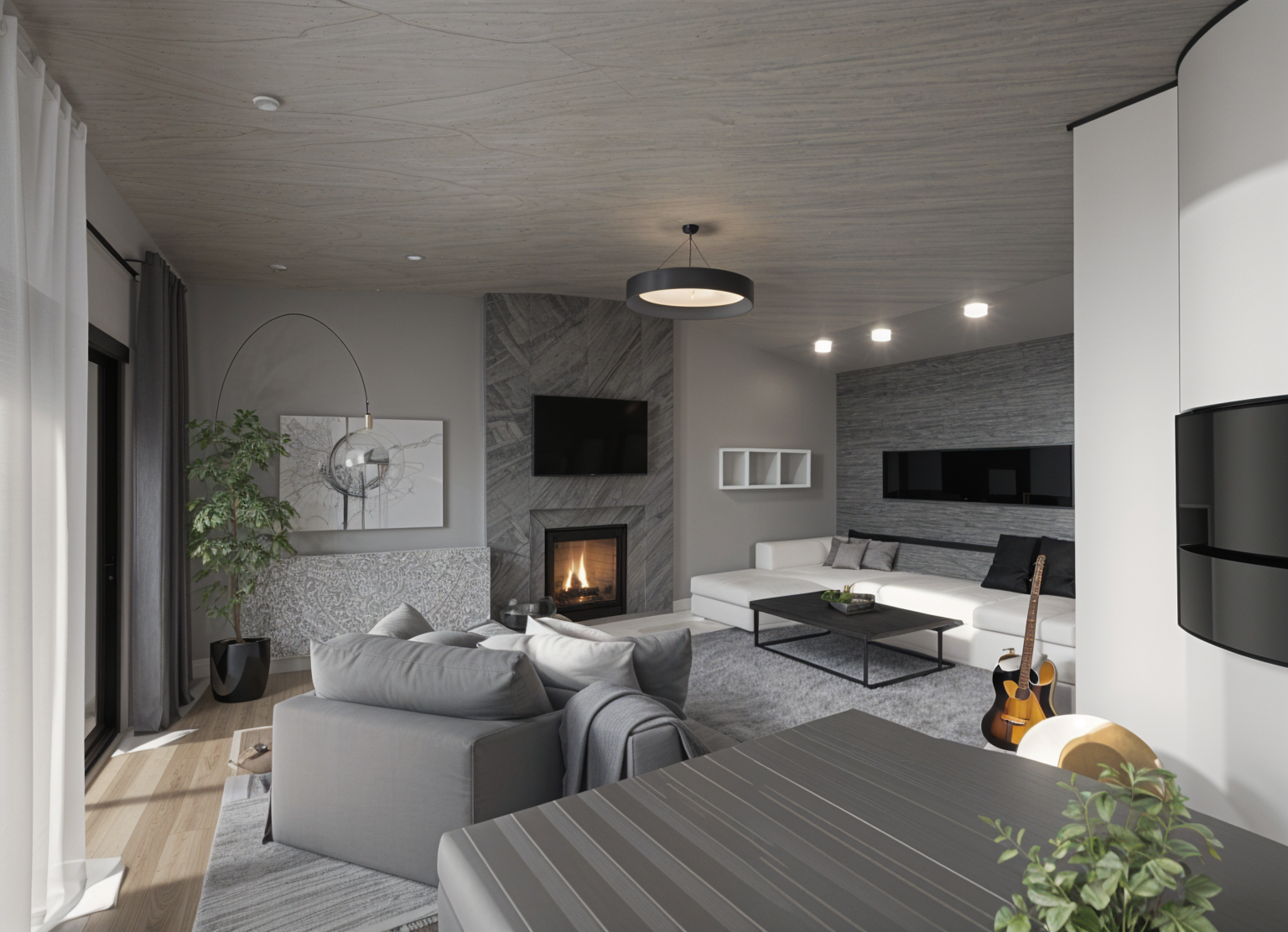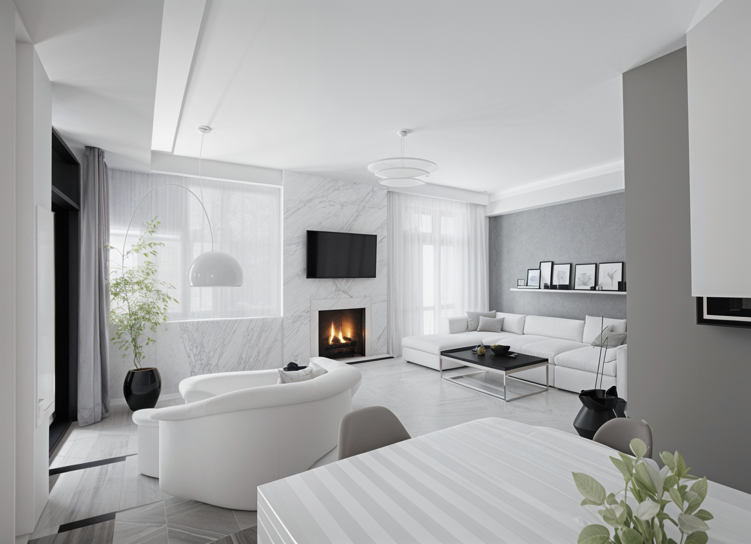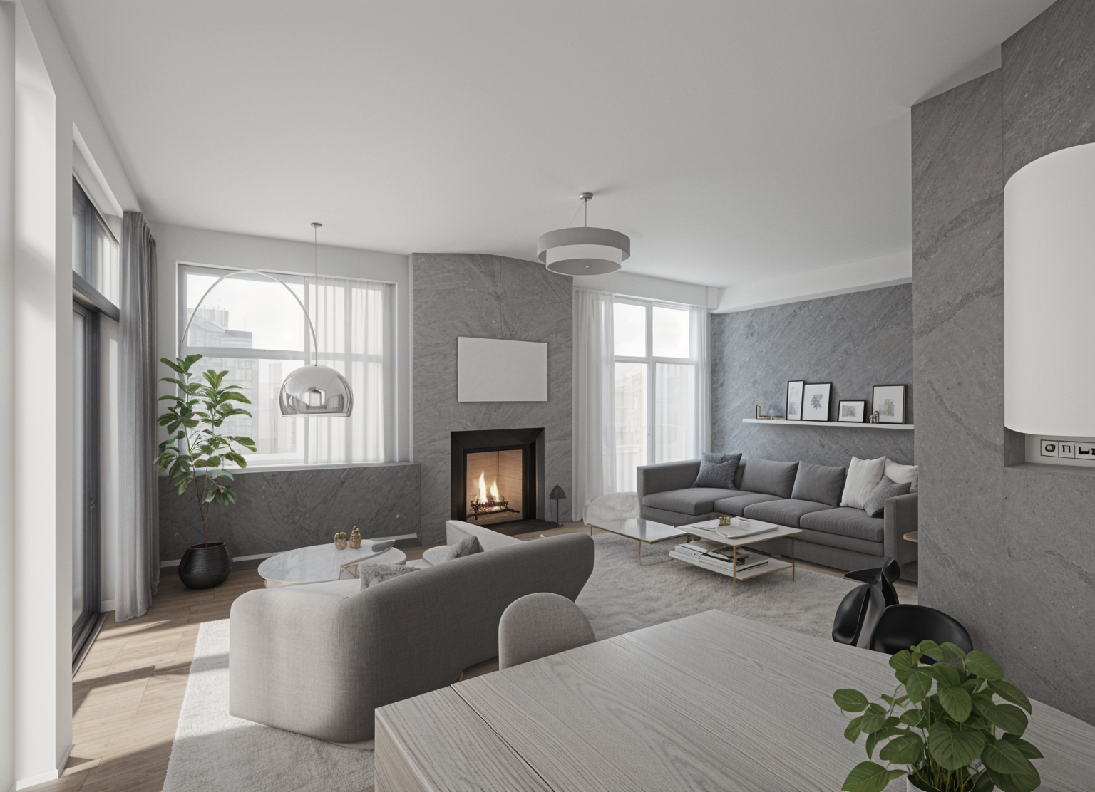 replace first floor arched windows with openings with steps inside similar to the one at the center