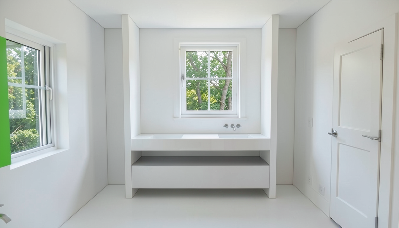 elegant realistic image white painted panel walls add interior lighting soft dusk sky outside add place settings add colorful painting on back wall remove place settings on sink side add ceiling coffer centered on island