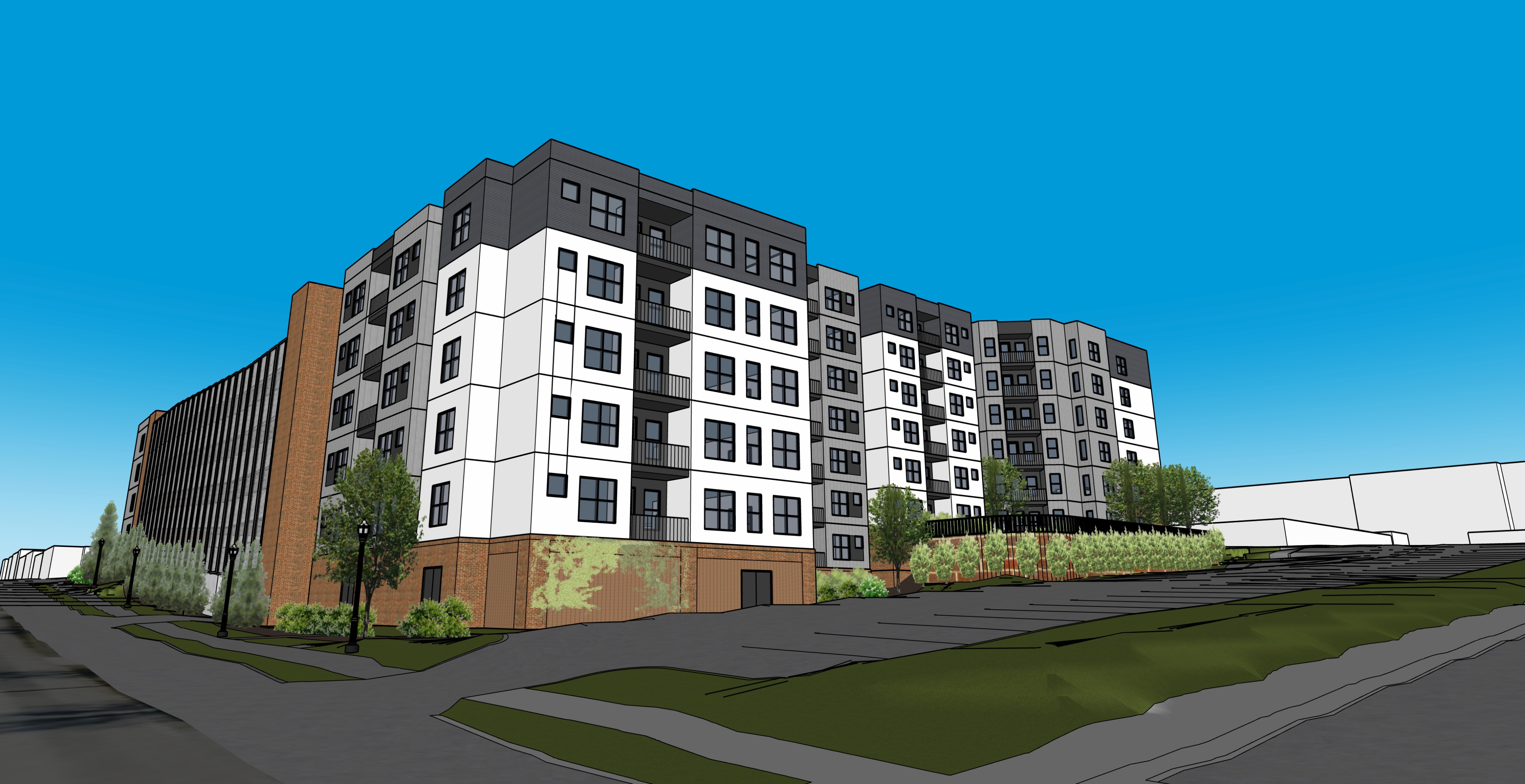 make the white portions of the building a stucco finish with appropriate horizontal and vertical jointing