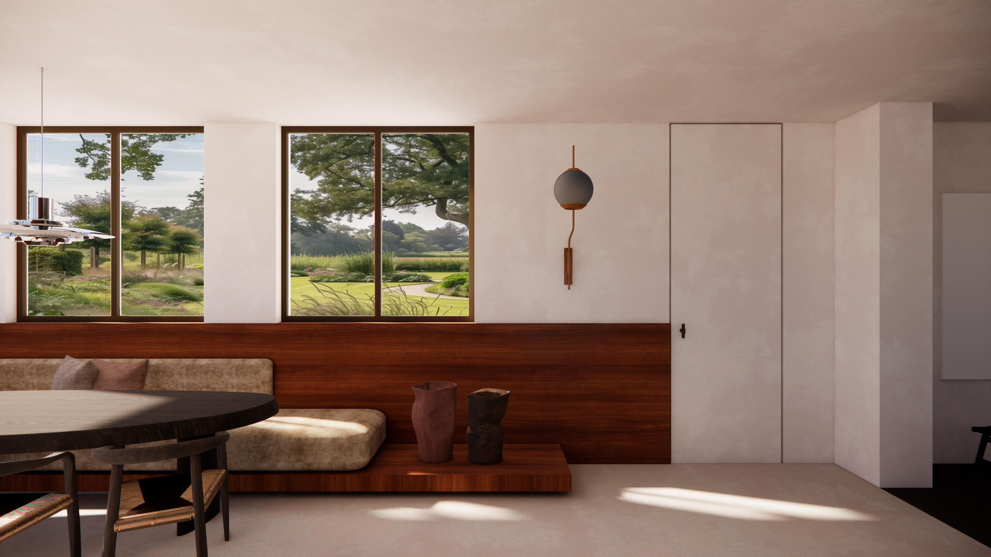 modernist exterior shot this 3d visualization highlights realistic window reflections and subtle shine effects to create a natural interplay between the interior and the background by adding depth and gloss to the glass surfaces the scene avoids a flat cut out look and integrates the surroundings in a more believable way architecture