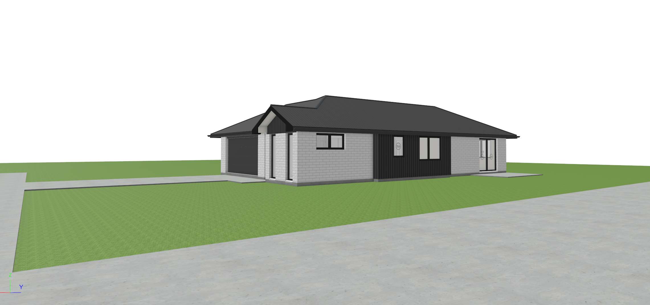 white brick black wood and fencing short grass