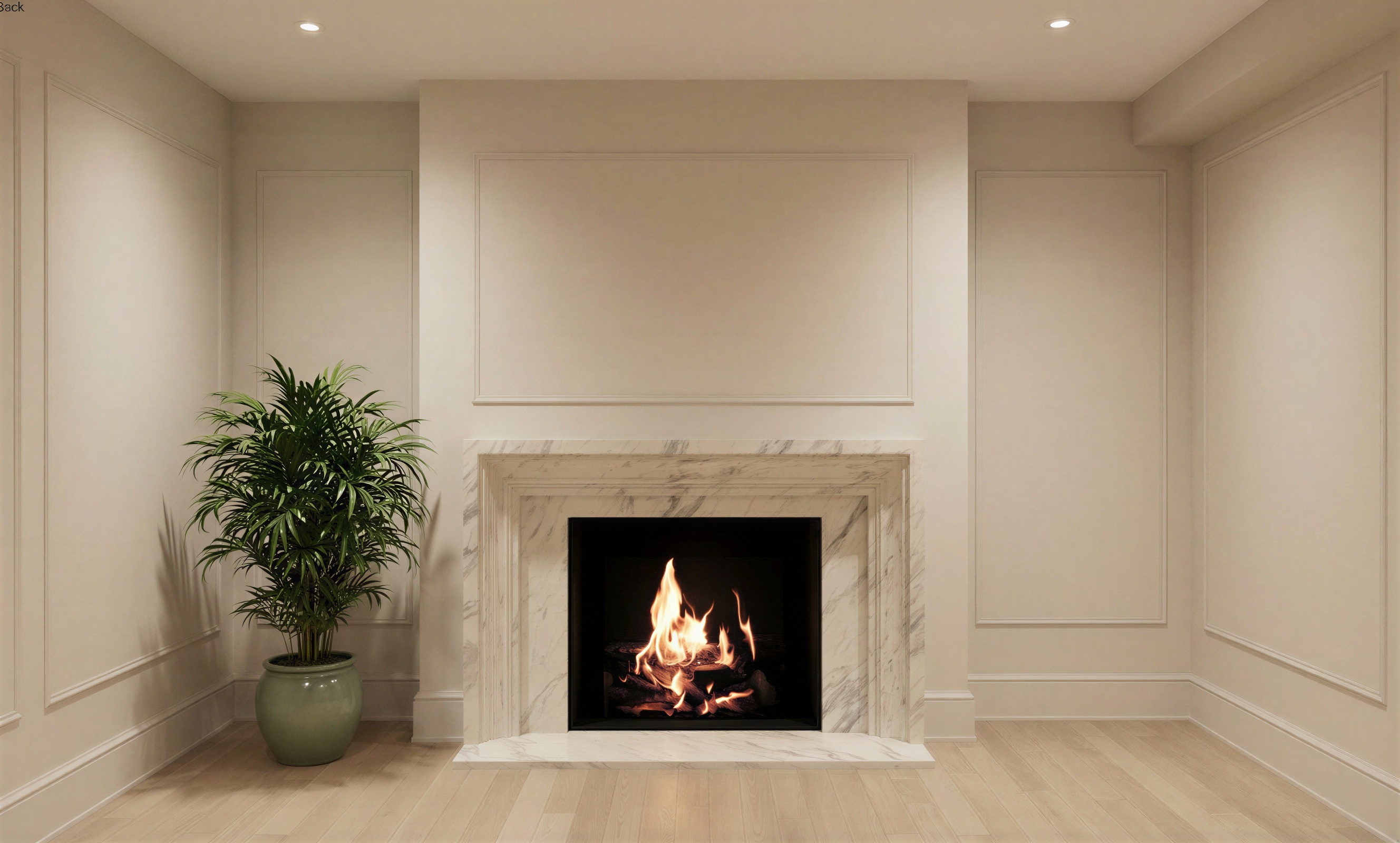 keep everything the same remove the plant add a glass screen protector in front of the fireplace mantle because its a burning fireplace