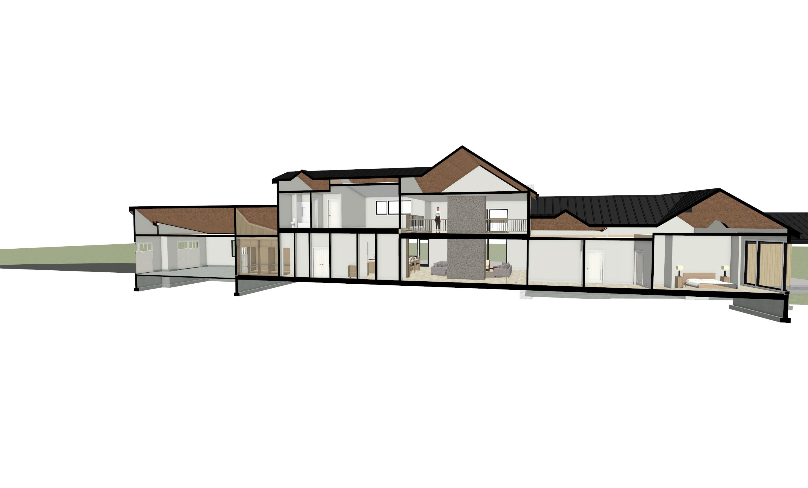 this is a 3d cross section enhance the realism of the existing architectural design while maintaining the same materials and textures focus on realistic lighting shadows and surface details to create a lifelike appearance ensure the mixture of wood siding is preserved in the correct areas making them look authentic and cohesive this is in montana add montana landscape with nice landscaping near the house add montana vegetation around the house make wood siding modern vertical 10 wider plank siding natural cedar light warm honey tone clear matte finish clean sharp edges minimal knots contemporary scandinavian farmhouse style high end residential exterior the siding is not board and batten it is wide planks with realistic wood grain texture make the wood siding planks the same width as the image reference do not add a chimney add mountains far off in the distance do nice landscaping in front of house and and native montana vegetation in forground dont add chimney nice yard in foreground remember the wood siding should be clear with no knots rock siding should be white stacked keep black siding the same trees far off to the right and mountains far off to the left