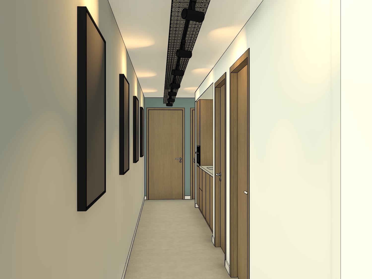 alle houte elementen zijn licht eiken de verlichting warm wit plaats wat kunst in de schilderijen