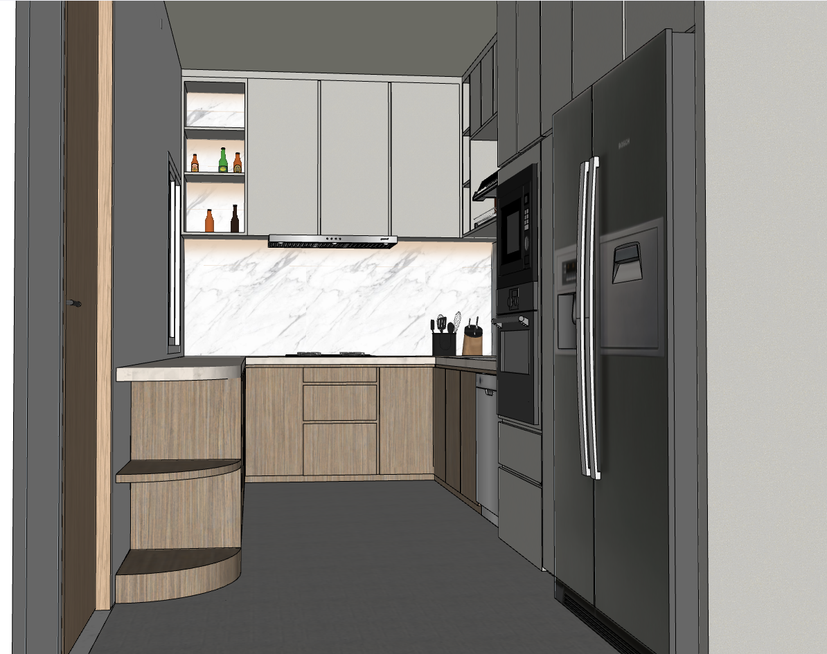no line at the wall plain ceiling have a void the void follow the picture size the outside og the dliding door is outdoor dont need tree outside just show normal view like the picture i gave outside remain same as picure i gave add curtain at the sliding door wall is plain no line the table white