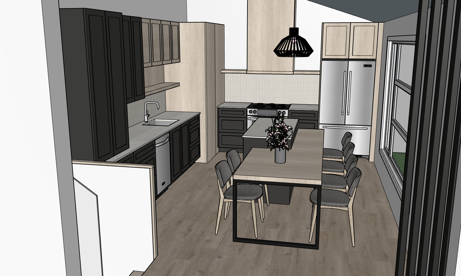 ajoute de l clarage sous les armoire du haut et des poign e rebord noir