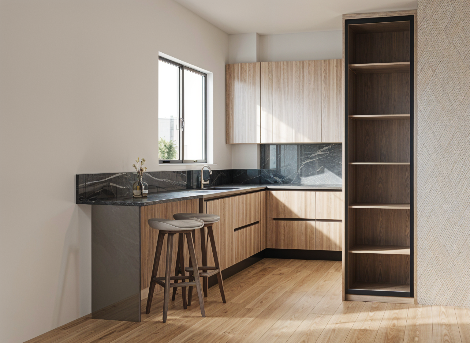 monumental bright dressing hall with a central glass botanical pavilion aligned with the existing structure faceted or curved glass walls enclosing a dense orchid grove ceiling and walls flowing continuously around the volume surrounding space kept minimal and uncluttered terrazzo border flooring with carpet inset no visible cabinetry details only two small chairs for scale high exposure daylight serene greenhouse like atmosphere wide angle architectural visualization emphasizing spatial continuity and light