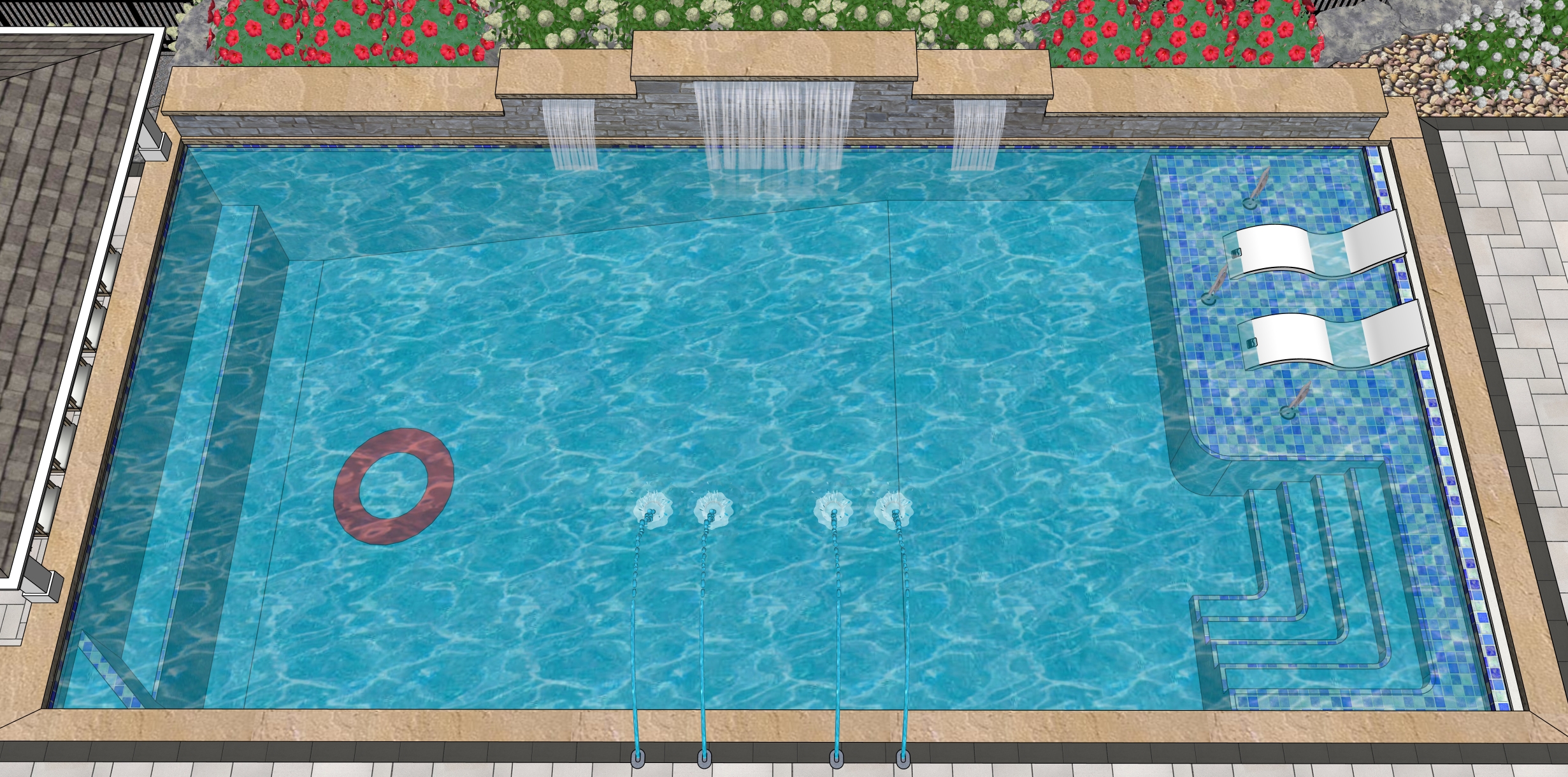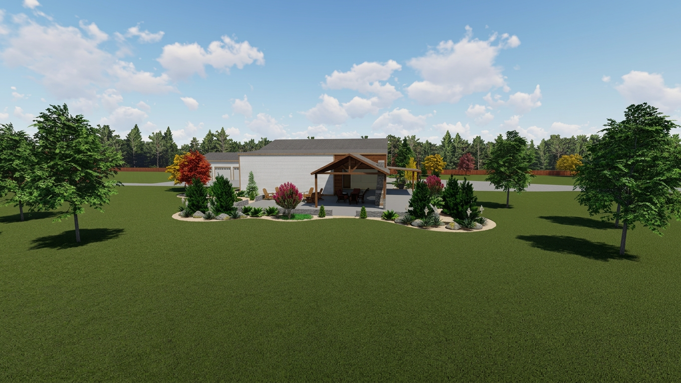 create a photorealistic exterior rendering from this sketch up view use realistic materials accurate scale and natural proportions apply soft daylight with realistic shadows global illumination and subtle reflections enhance textures without changing geometry maintain the original camera angle and composition produce a clean professional real world visualization