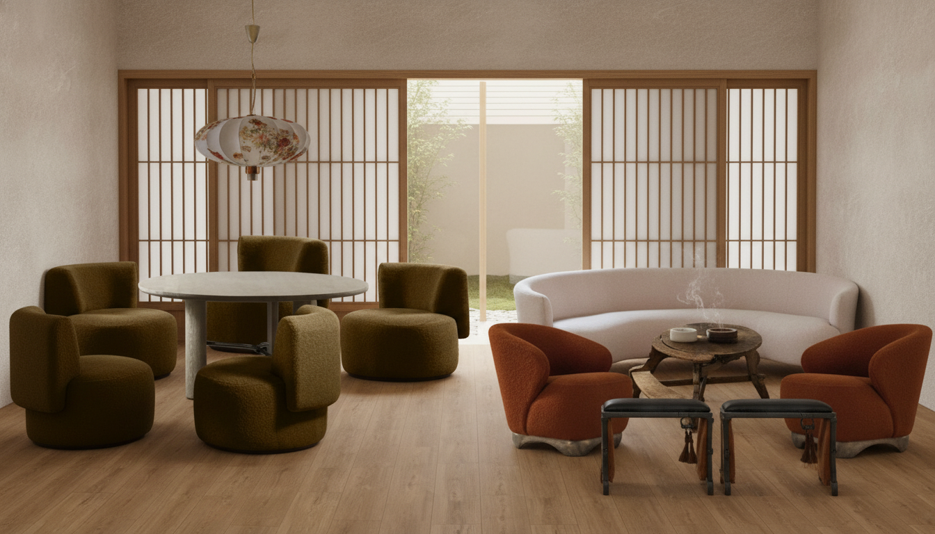 nighttime techno party scene a dj is performing on a balcony above while a crowd of young people dances wildly below strobe lights flash and colorful beams cut through the evening air the atmosphere is electric energetic and immersive