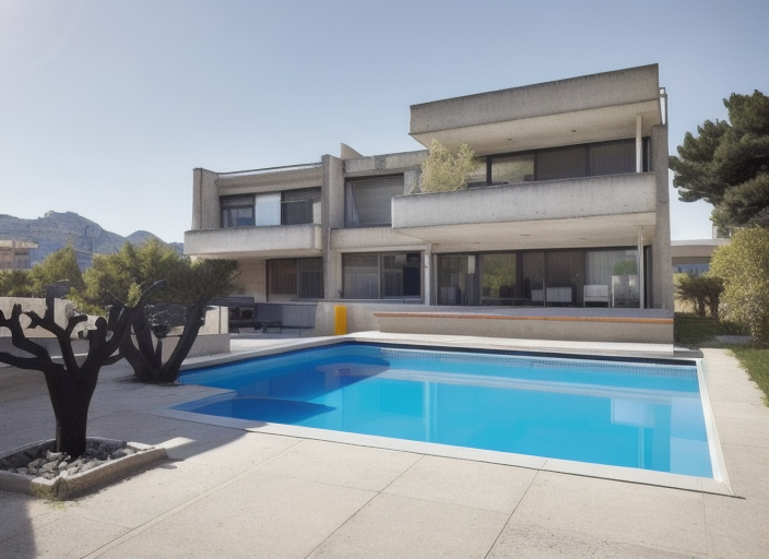 exterior shot modern industrial building with a clean minimalist design grey metal composite panels on the fa ade large reflective blue tinted glass curtain wall at the main entrance and sharp geometric volumes forming a cantilevered upper block long side elevation with continuous opaque white cladding and a distinctive window band clear precise edges and monolithic appearance exterior ground composed of asphalt bright daytime sky with soft shadows maintain the perspective geometry scale and proportions of the original reference photo high realism but sketched architectural rendering style