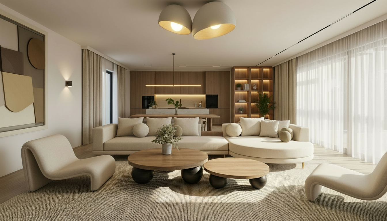 modern villa golden hour no sun lighting on cozy atmosphere