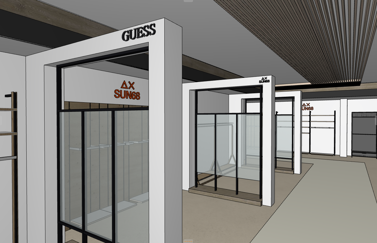 a modern clothing store interior diffused artificial lighting creating a bright and inviting atmosphere