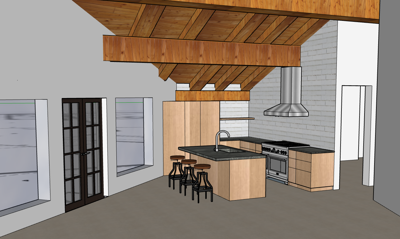 palm springs kitchen with a resort vibe and painted cabinets and colorful floral patterns throughout