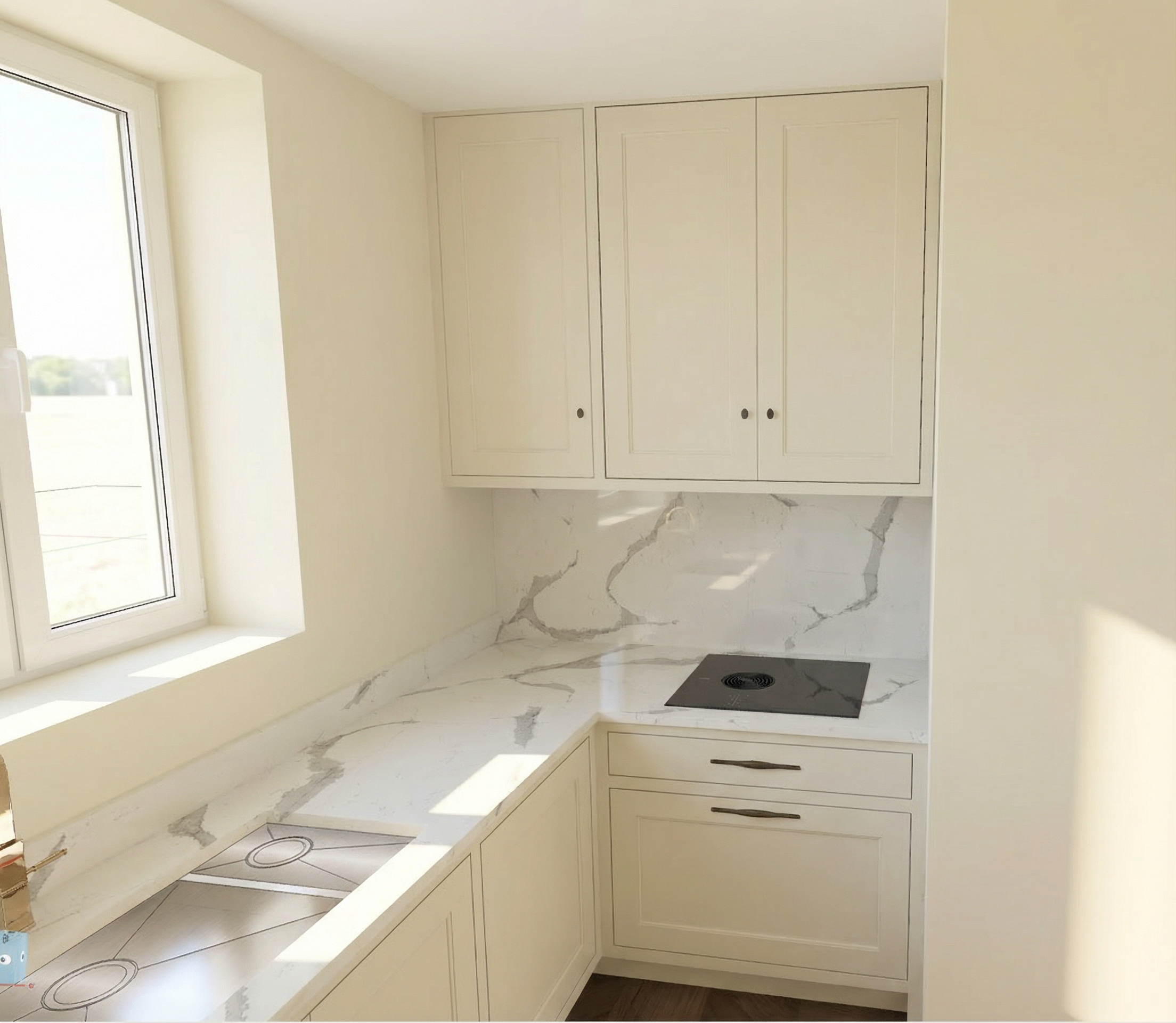 convert this floor plan into a minimalist isometric 3d view of a full house show the space from an elevated angle with furniture walls and details visible using the two 2d pictures of this home create a simple 3d isometric drawing in black and white of the exterior only garage is on the left as you look at the front of the home keep both garage bays doors and windows on side of home use the same furniture as shows on the plan do not change the orientation of the floorplan