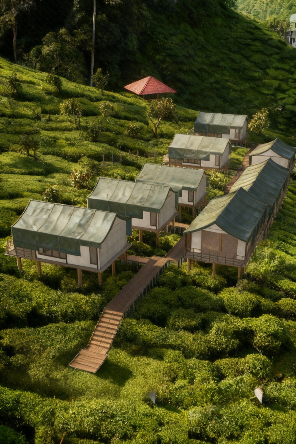 render a modern ferry terminal with a spacious design featuring a striking entrance the roof is adorned with solar panels in deep navy blue while the building exterior showcases sleek metallic and light beige tones surrounding the terminal are lush palm trees with vibrant green leaves and light brown trunks the parking area is filled with a variety of vehicles in black white and red above a clear sky with soft wispy white clouds creates a bright and inviting atmosphere the ocean in the background reflects a serene blue enhancing the coastal vibe add a sense of bustling activity with small figures of people entering and leaving the terminal the atmosphere is lively and futuristic emphasizing sustainability and travel
