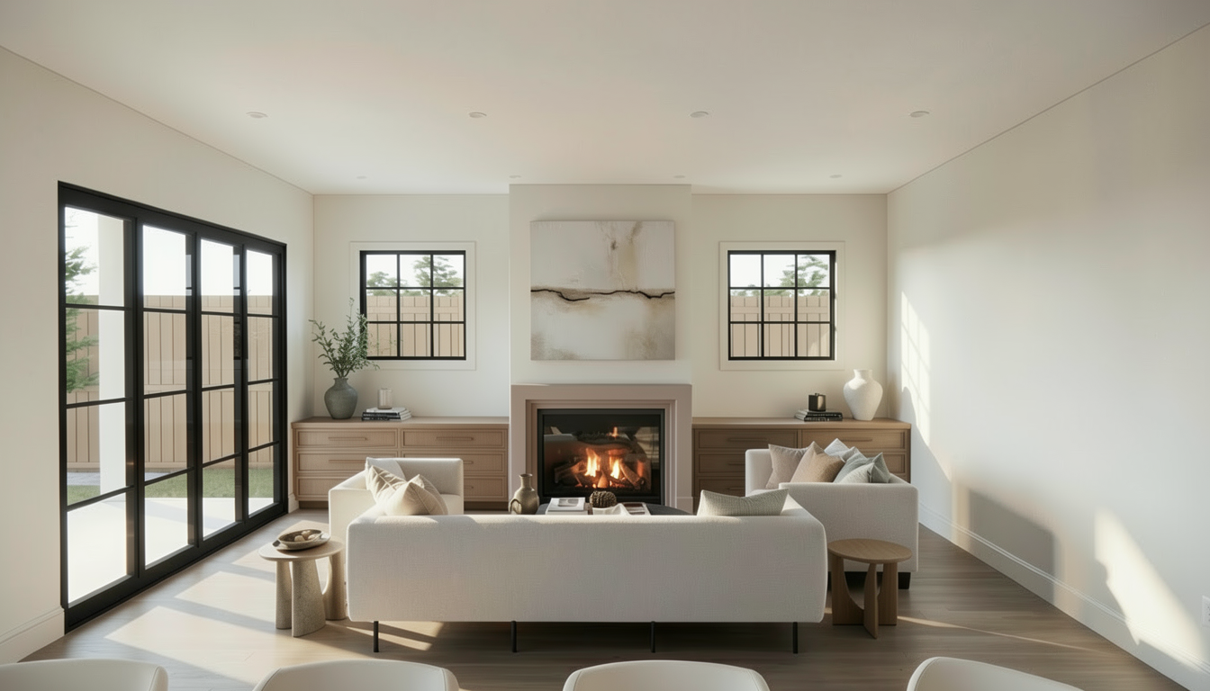 transform the provided elevation into a hyper realistic interior photograph that is indistinguishable from a real professionally shot interior design photograph this must read as a real space captured by a camera not a rendering not a visualization not architectural cg not concept art and not an illustration geometry lock non negotiable preserve the exact original geometry layout proportions ceiling details wall depths panel divisions openings doors cabinetry locations millwork dimensions built ins and circulation paths with zero architectural changes nothing may move scale simplify or be reinterpreted geometry must remain absolutely unchanged camera derivation critical derive the camera position height angle and framing strictly from the uploaded elevation eye level interior photography centered or naturally balanced composition 24 35mm interior lens feel no dramatic angles no stylized framing do not reuse or approximate camera framing from any previous image remove all drawing artifacts completely remove all linework cad edges drafting outlines diagrammatic shapes sketch artifacts nothing may appear outlined flat schematic or illustrative the elevation must be visually reinterpreted as a finished real interior photograph material realism rules wood if present smooth solid plank material extremely subtle restrained grain matte or soft satin finish only no graphic patterns no decorative striping no visual noise wood must absorb light gently never glossy or sharp fabric upholstery if present soft compression subtle seams gentle shadowing natural fabric texture no flat color blocks stone slabs if present light natural veining soft organic variation low contrast no symmetry no bold or busy patterns stone must feel heavy and grounded walls fine surface texture slight tonal variation never flat paint edge construction realism all edges corners joints and transitions must be softly broken and physically realistic no razor sharp corners no cgi perfect edges slight construction tolerances only everything must read as fabricated installed and dimensional lighting photographic behavior lighting must behave like real high end interior photography natural daylight only unless otherwise specified realistic light bounce gentle shadow falloff uneven exposure distribution subtle brightness variation across surfaces avoid studio lighting uniform illumination over clean exposure global illumination look slight softness is preferred over sharpness camera image imperfections very important introduce subtle photographic characteristics gentle lens softness micro exposure variation natural contrast roll off mild atmospheric depth primary plane sharp background slightly softer the image must feel captured not generated absolute constraints no creative interpretation no stylization no exaggeration no added or removed elements any deviation from the original elevation geometry or intent is unacceptable negative prompt always include architectural rendering 3d visualization cgi unreal engine octane vray sketchup look flat textures graphic lines outlined edges over sharpened studio lighting concept art illustration ai look plastic materials glossy wood high contrast grain perfect symmetry keep design as shown in the picture keep the design as it is in image light cabinets are white and brown cabinets are white oak keep design in the image as it is