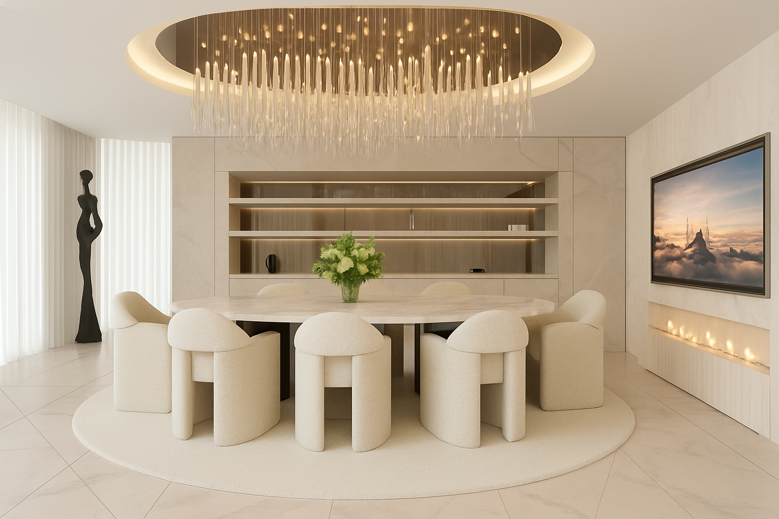 render a modern lobby area with a sophisticated and calm atmosphere the seating consists of plush dark gray chairs arranged against the back wall exuding a sense of comfort and style on the left and right side are white chairs with gold side tables in the center a dark brown circular tufted couch surrounds a tall lush green plant adding a touch of nature and freshness to the space the walls are painted in a soft light gray color featuring minimalistic framed abstract art pieces wooden accents are present in the furniture and the flooring is a sleek grey wood finish large floor to ceiling glass windows on the right allow natural light to flood in creating a bright and welcoming ambiance make the tree more realistic