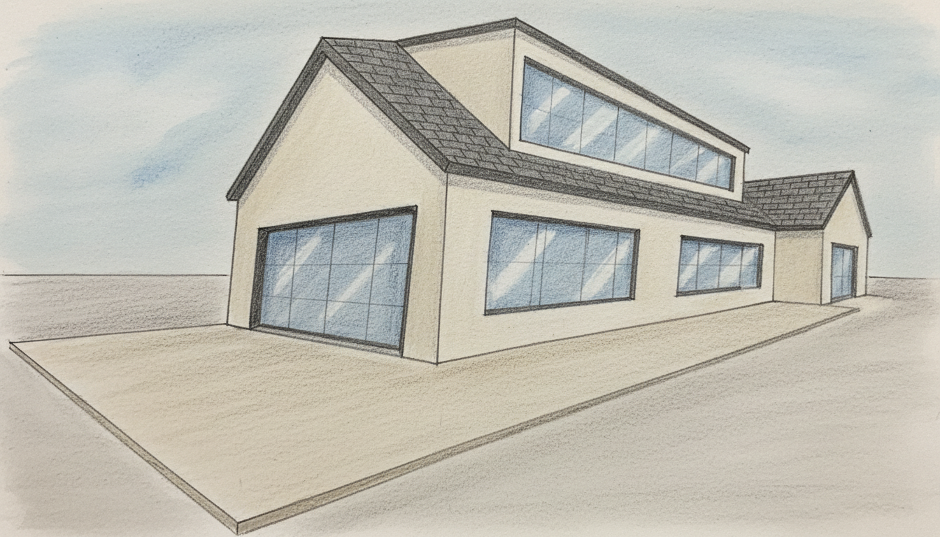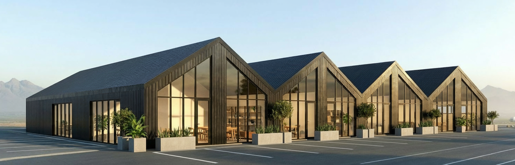 add sidewalk and space in front each and little more greenery only green but keep same render style