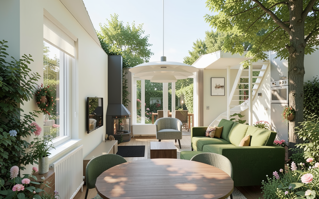 daylight background is bushy dutch holiday park view outside