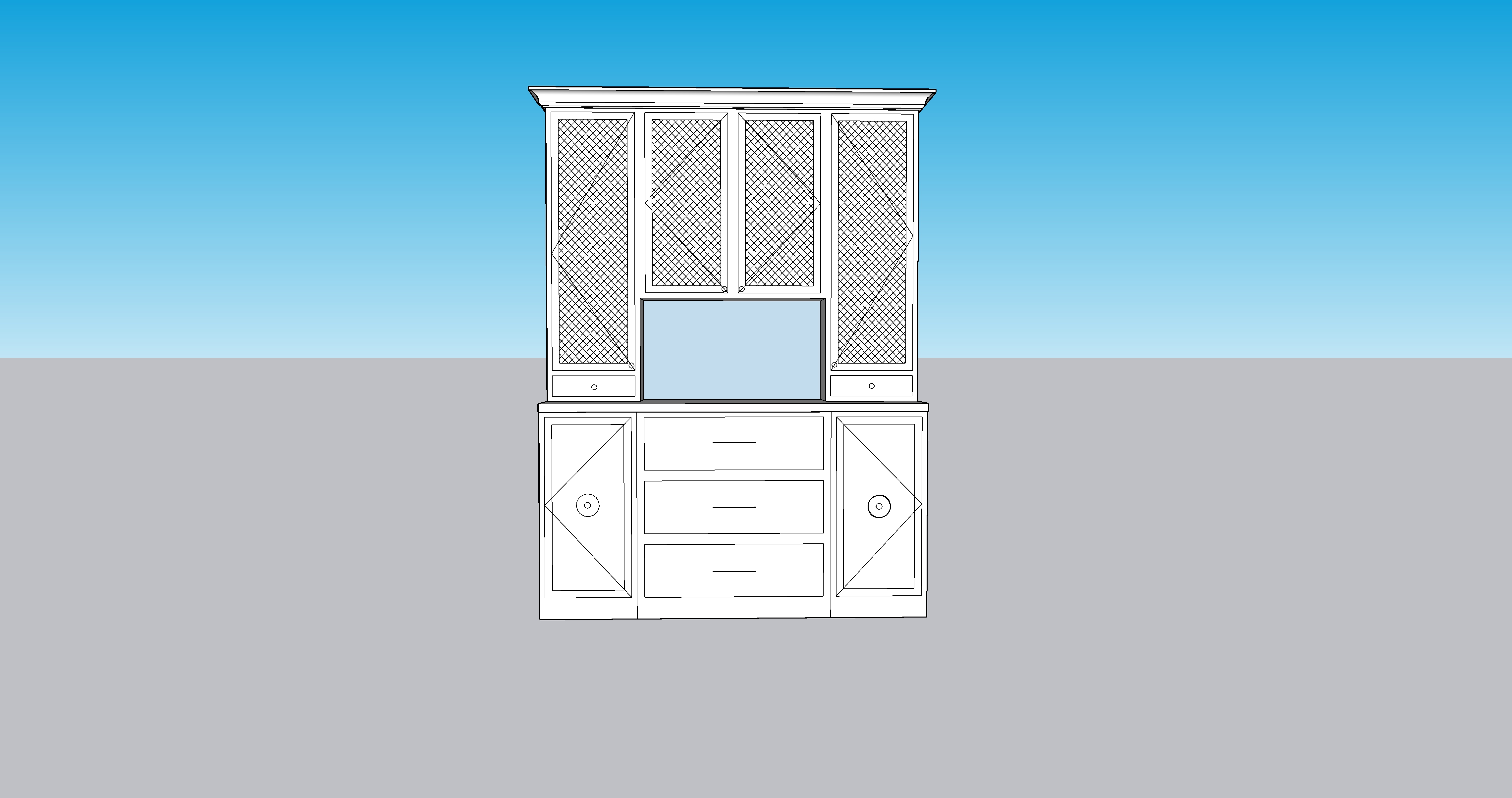 can you please make this a peacock blue color in high gloss with a marble countertop and backsplash please add modern matter starburst backplates on the lower cabinets where the circles are please add gold grills in the doors of the upper cabinets